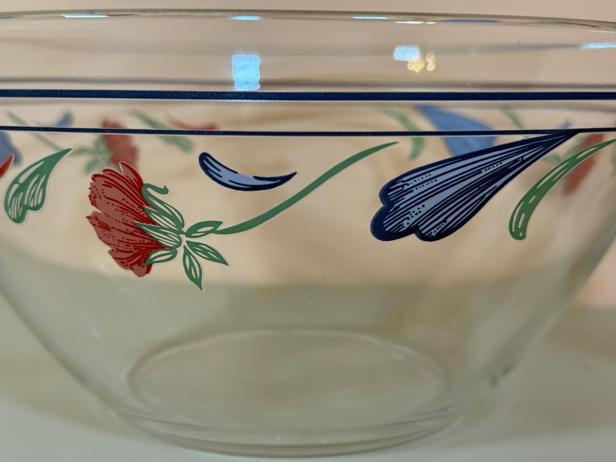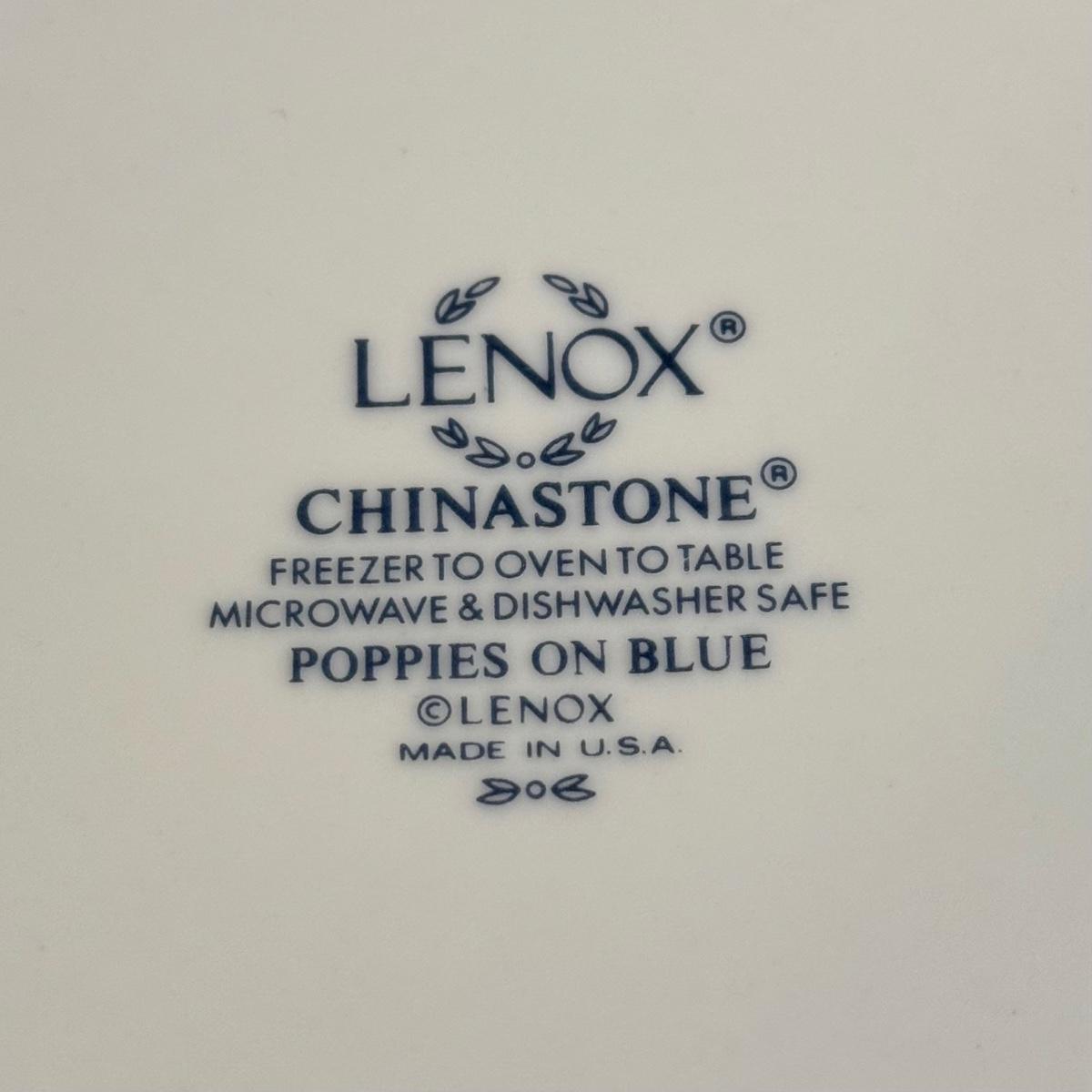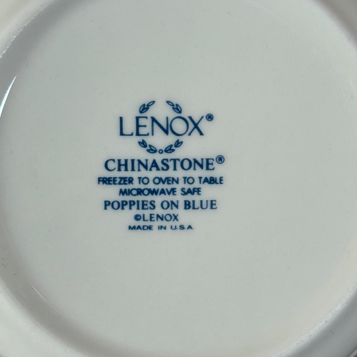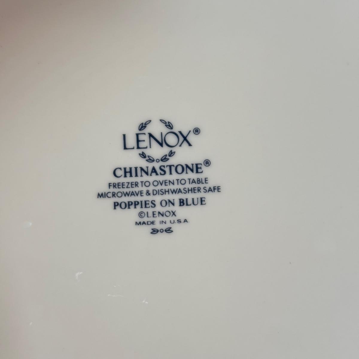 LOT 64K: Lenox Chinastone “Poppies on Blue” Plates (7), 2 sizes of Bowls (2 each) & Glass Mixing Bowls (2)