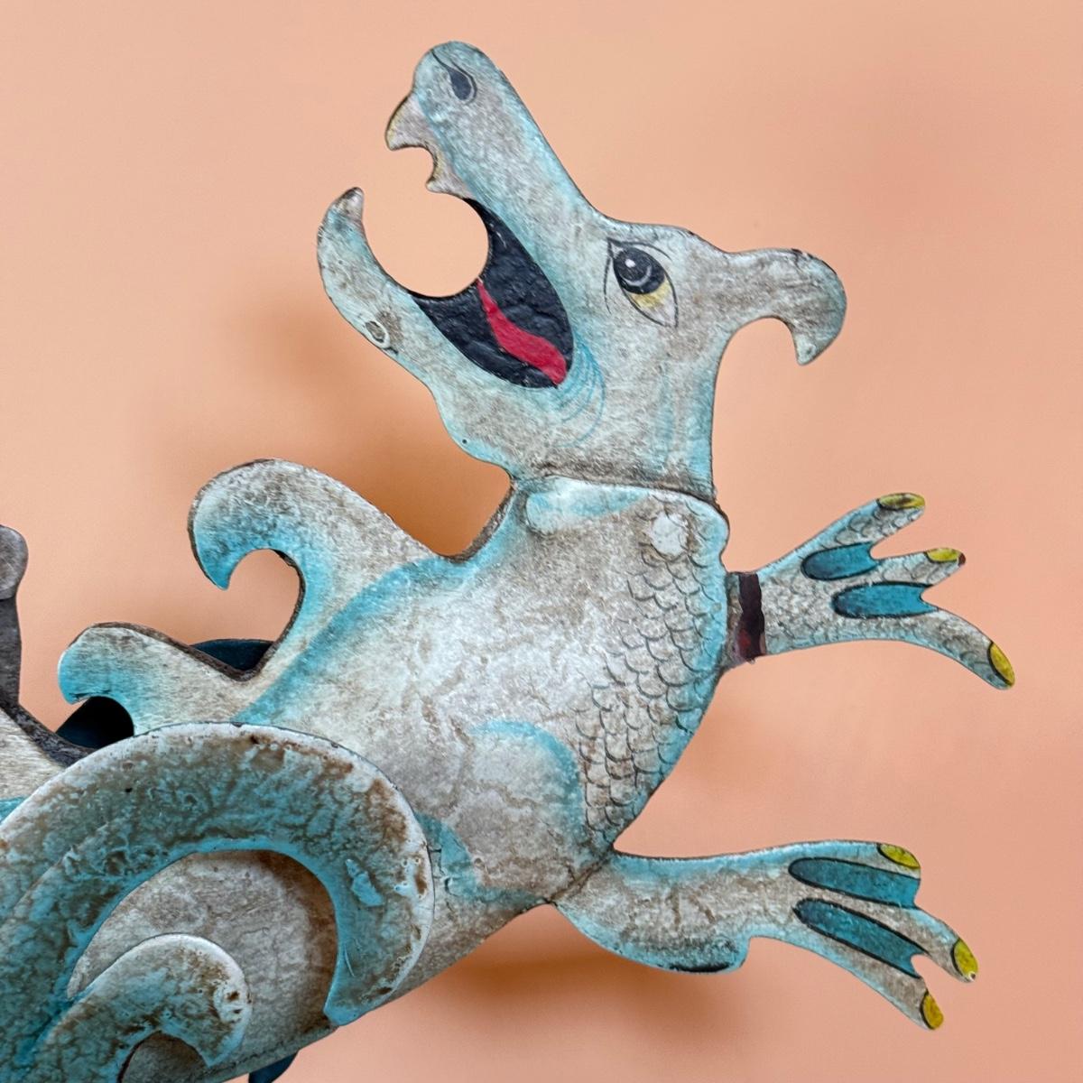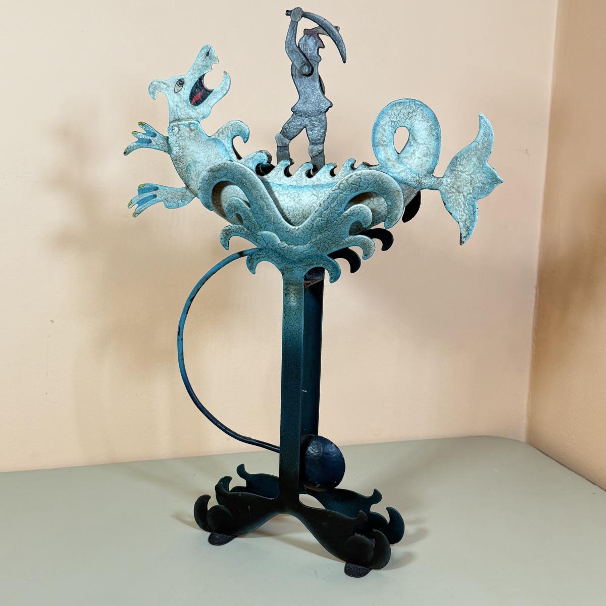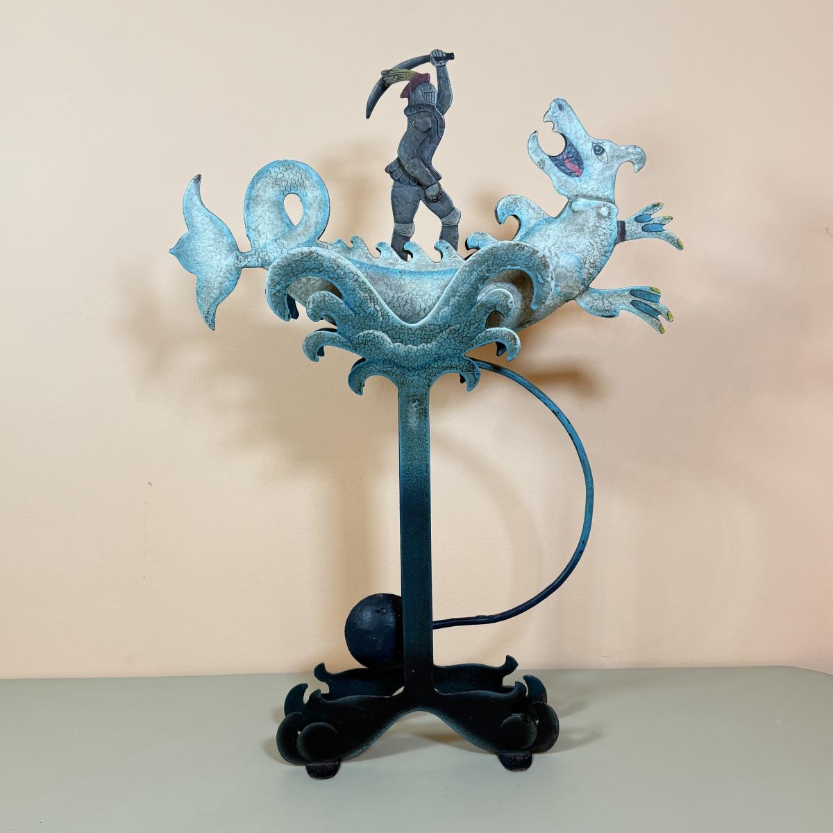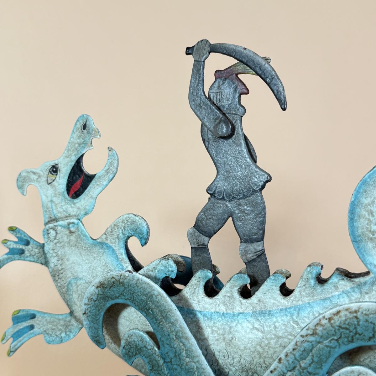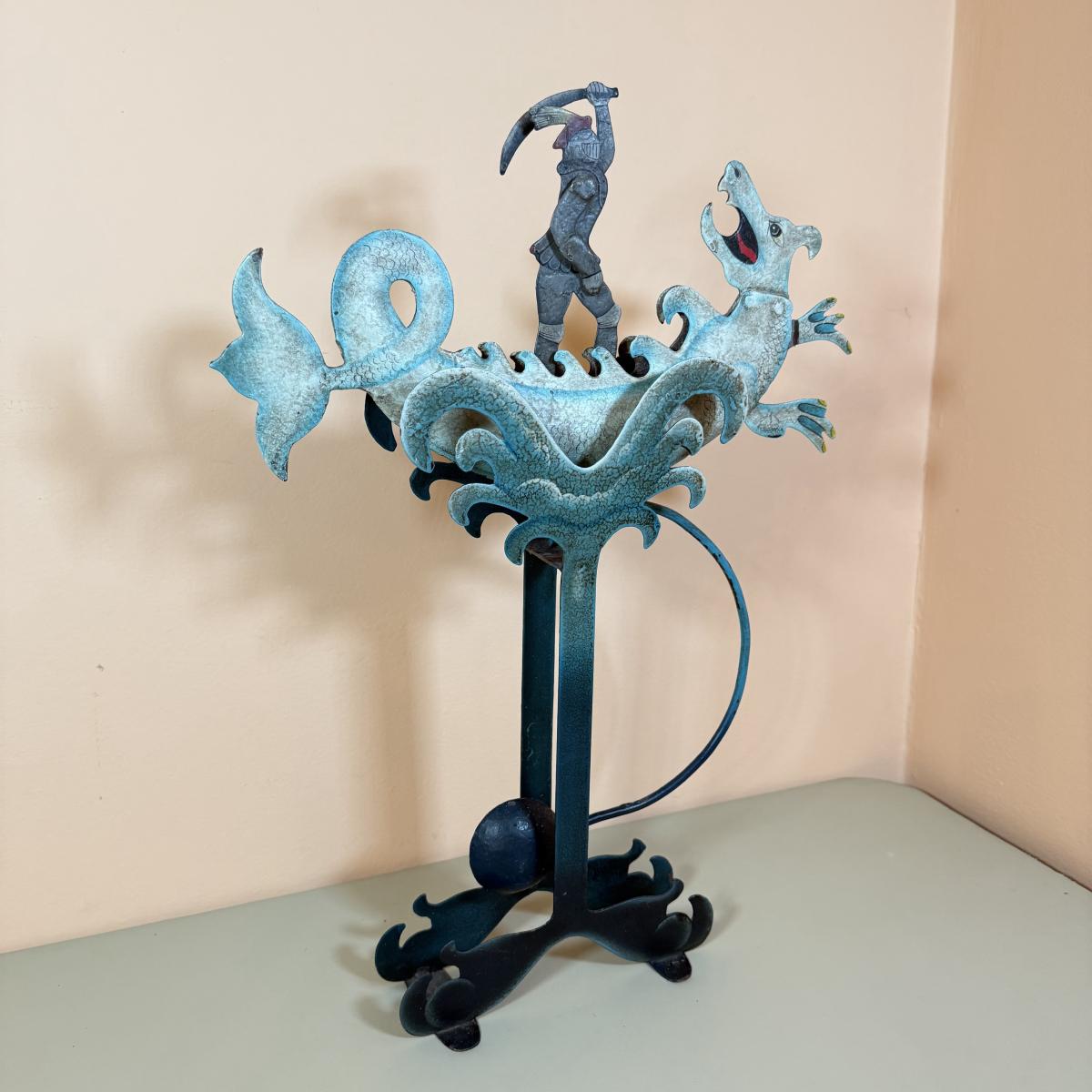 LOT 74H: Motion Toy / Decor: Metal Knight Fighting Serpent