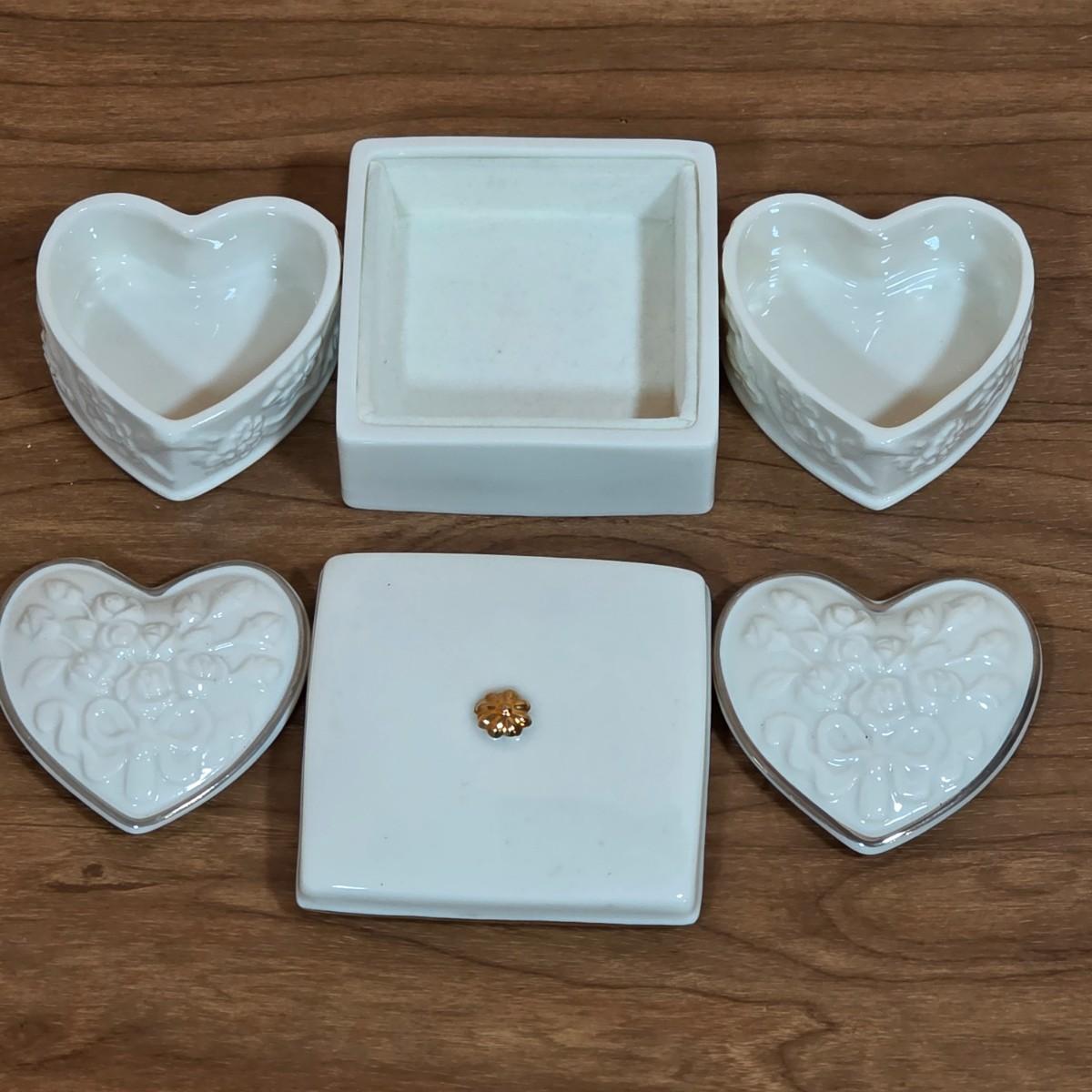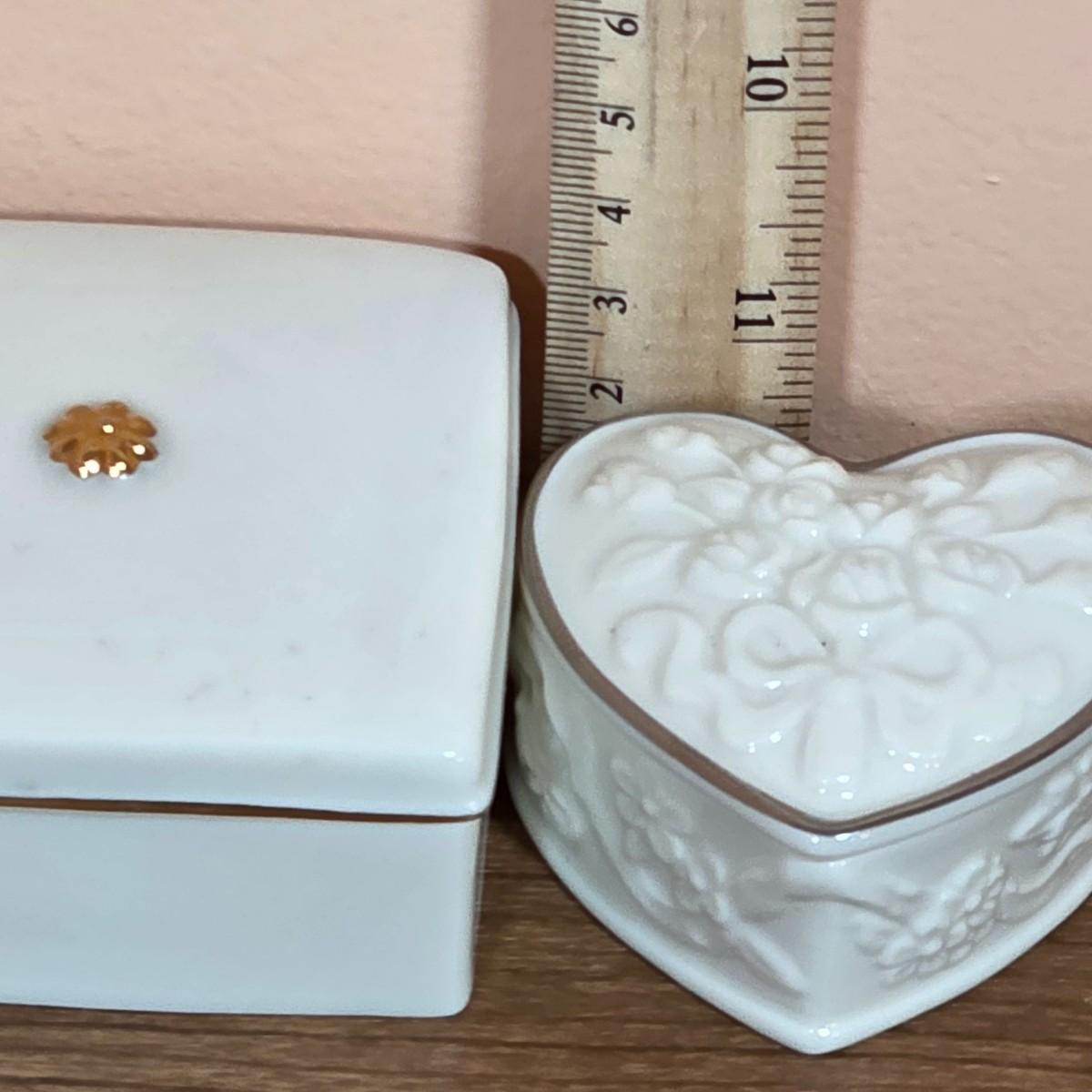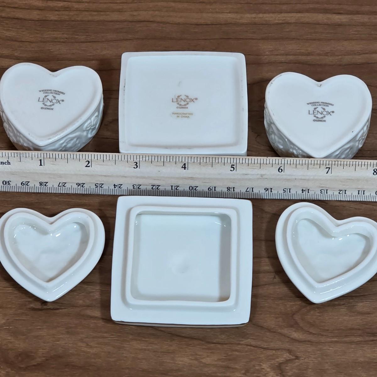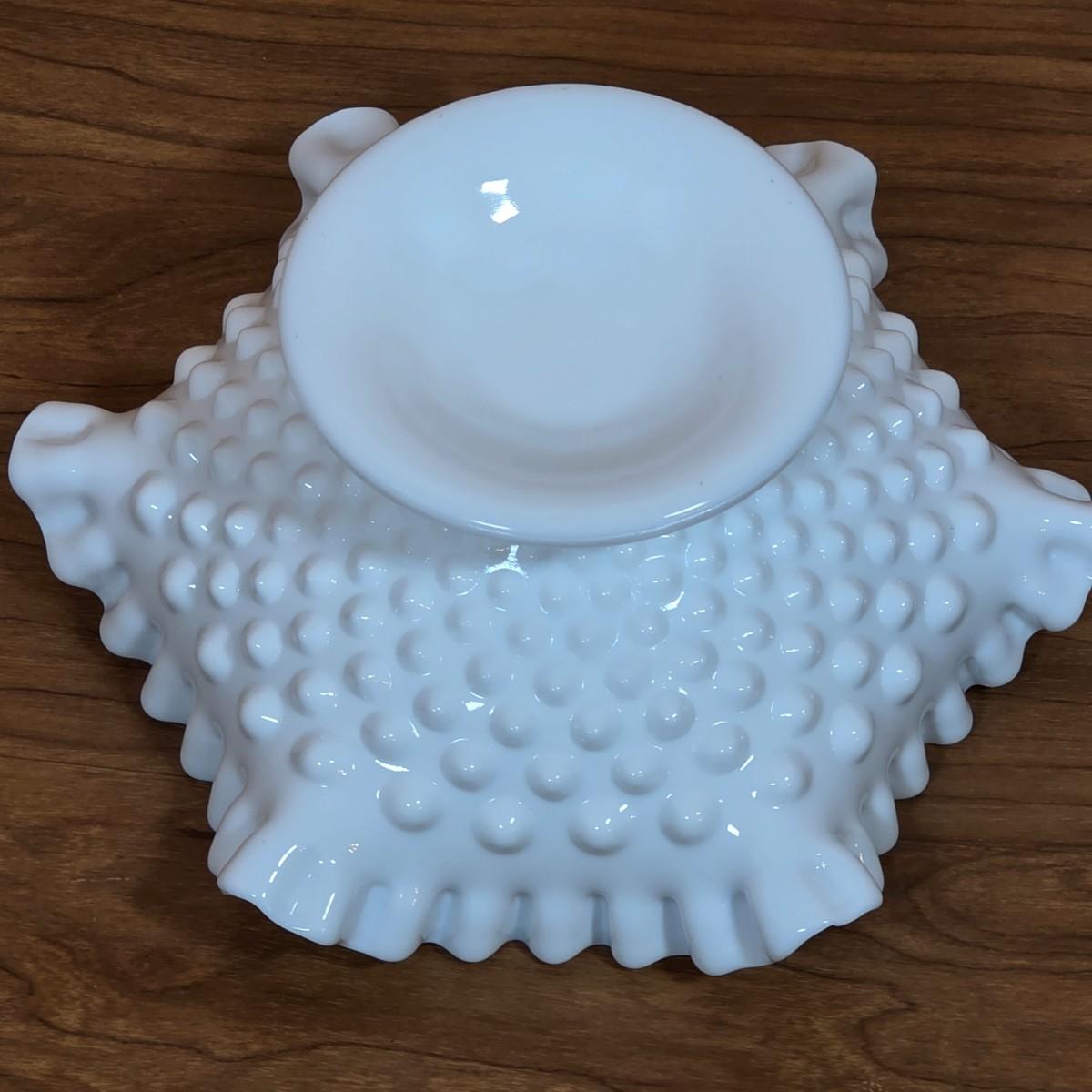 LOT 85D: Vintage Fenton Hobnail Pattern Milk Glass Crimped Footed Bowl, Along With Lenox Trinket Boxes, 2 Heart Shaped & 1 Square