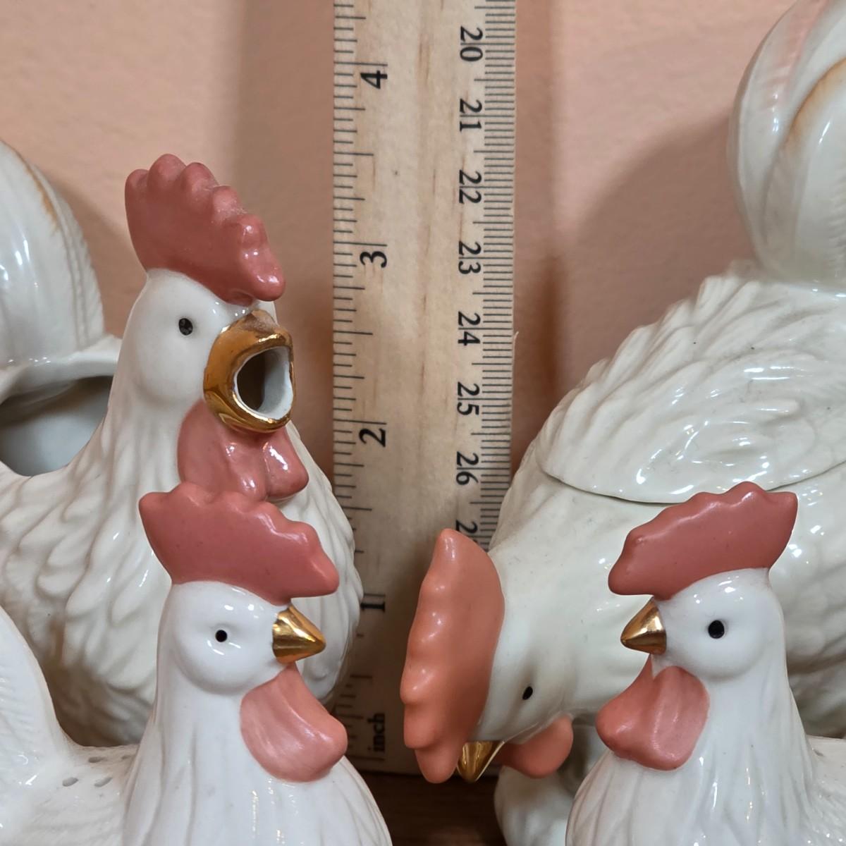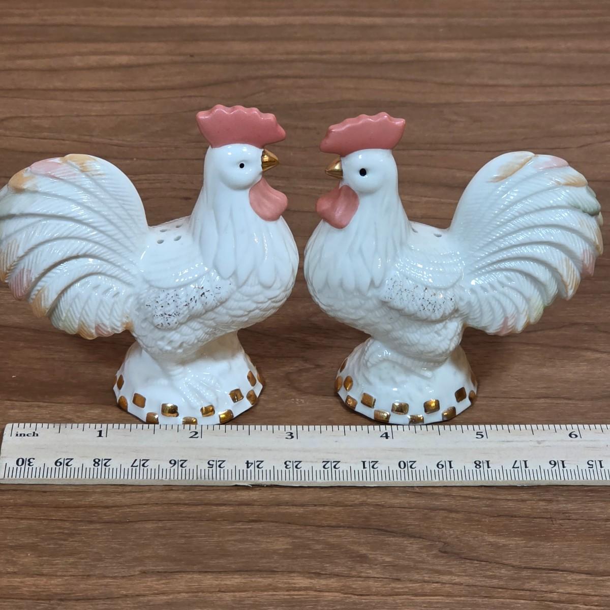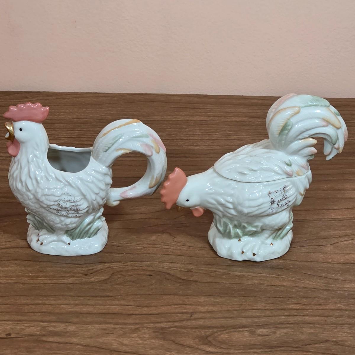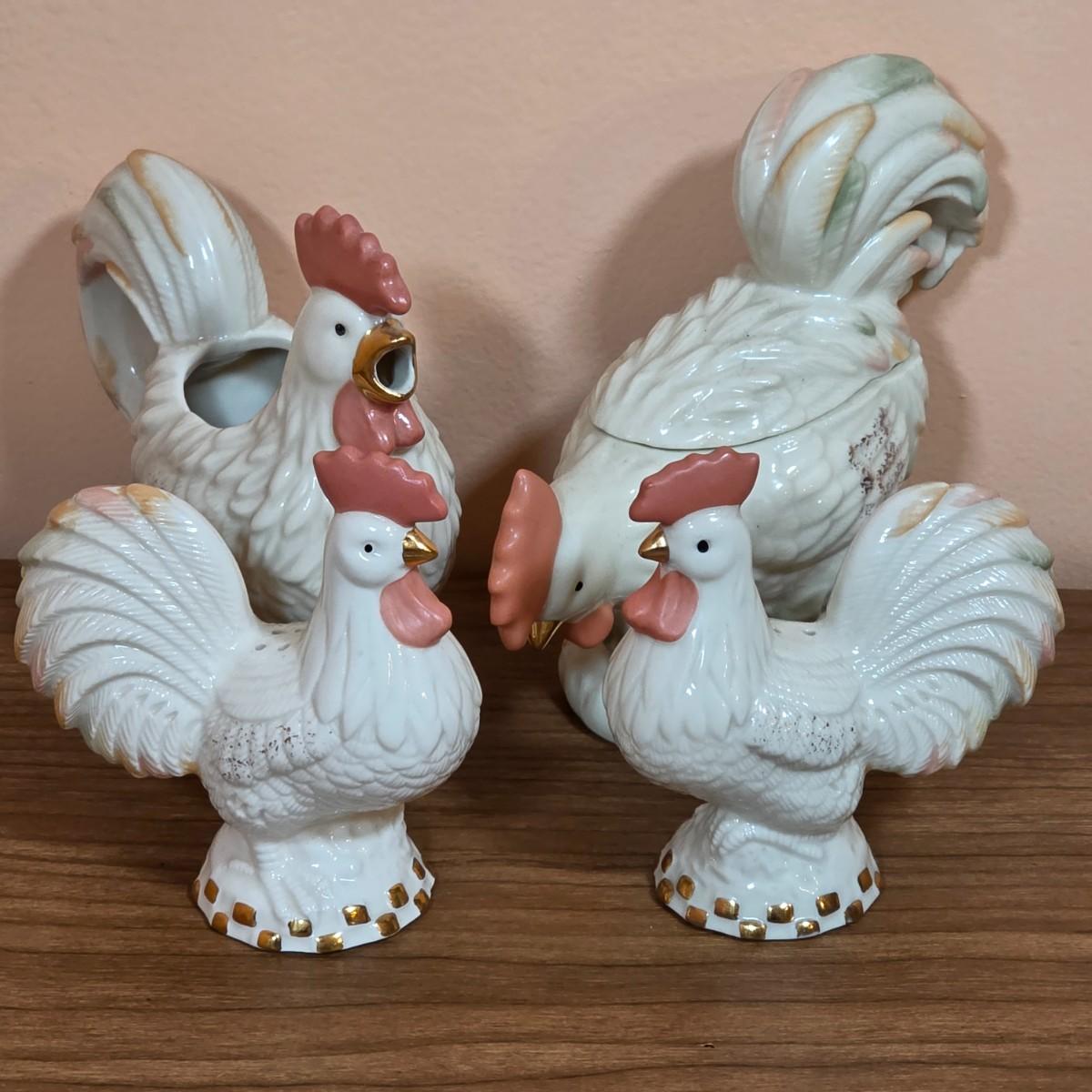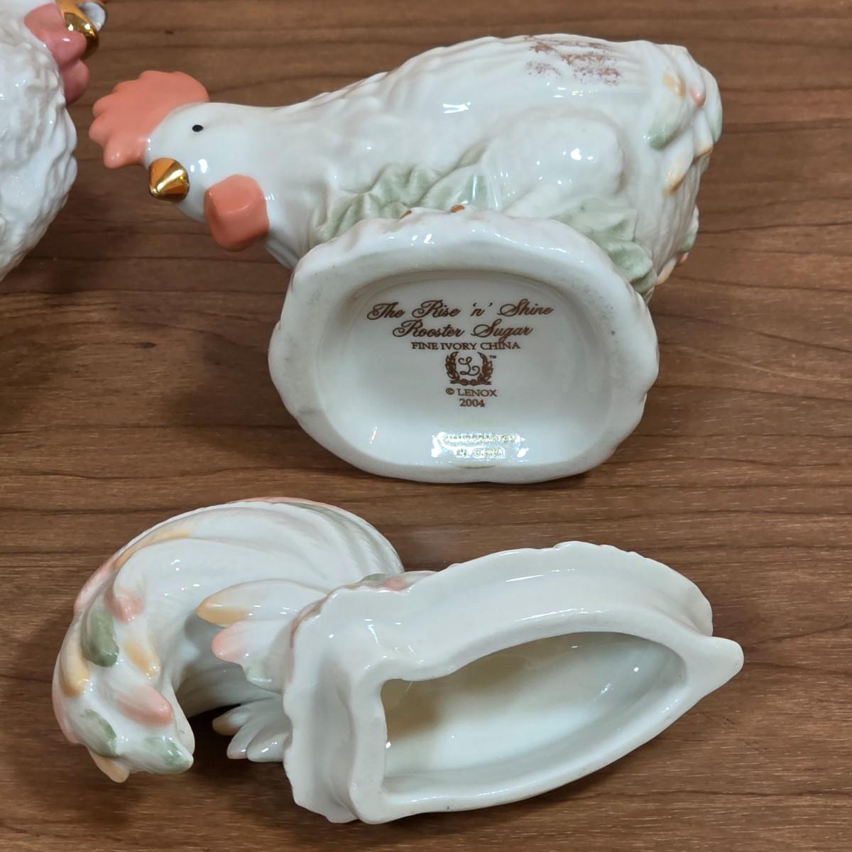 LOT 86D: Vintage Lenox Rise & Shine Rooster Collection. Sugar Bowl, Creamer, Salt & Pepper Shaker Sets