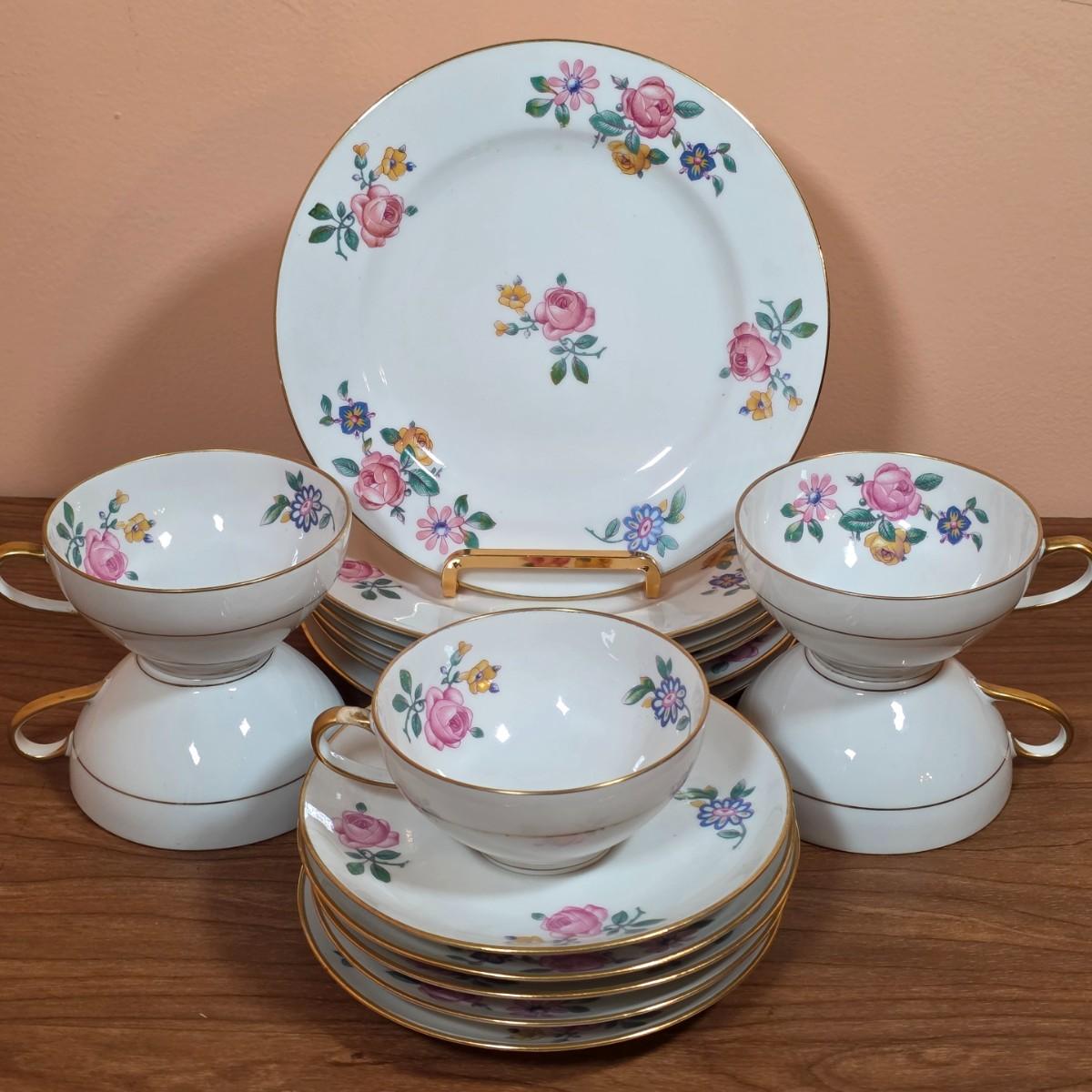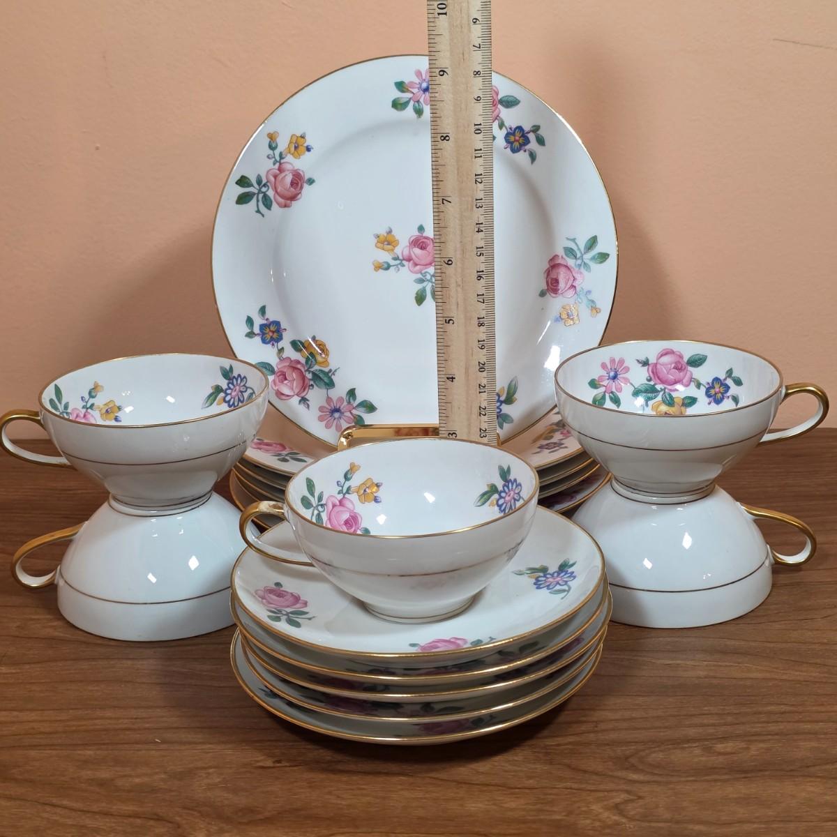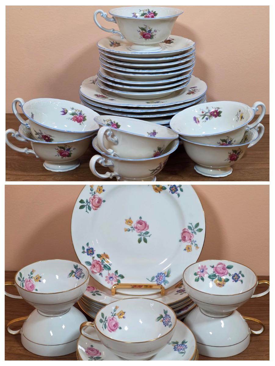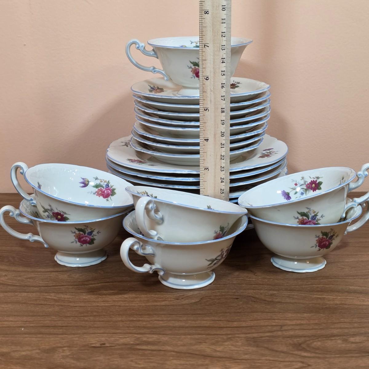 LOT 88D: Vintage Collection Of Limoges & Tattau Incomplete China Sets, Limoges Has 6 Plates, 5 Cups & Saucers, Tattau Has 8 Plates & Saucers With 7 Cups, Plate Stand Not Included