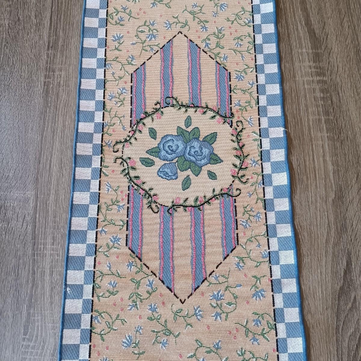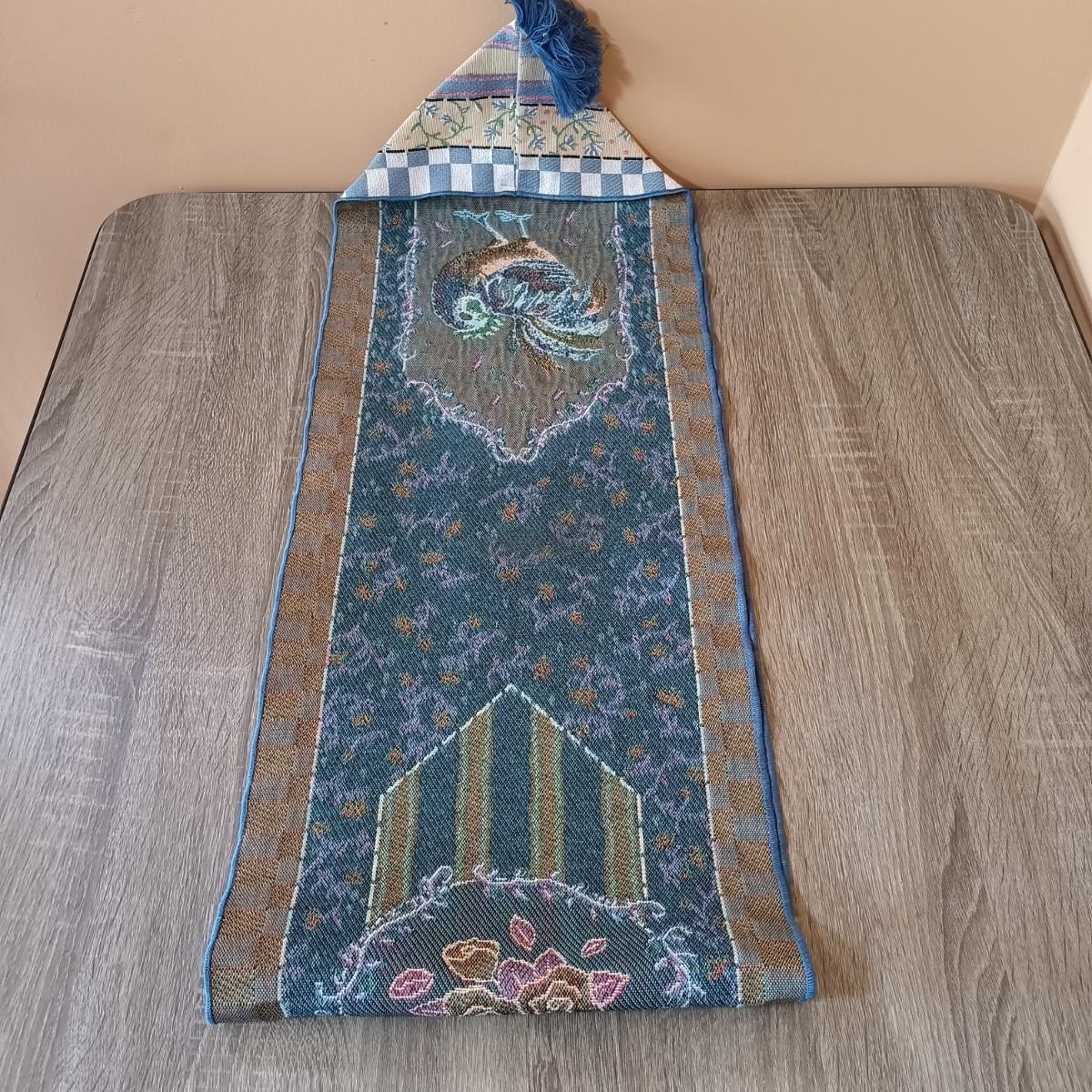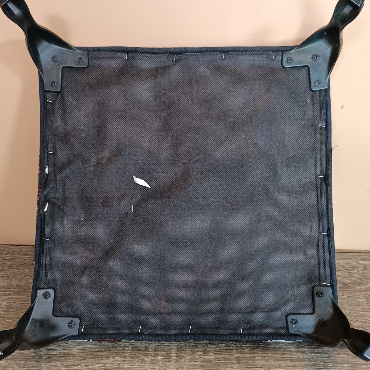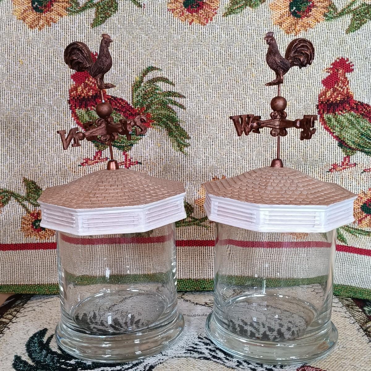 LOT 111L: Rooster Tapestry Footstool with Rooster Cupola Lidded Candleholders & Rooster Themed Table Runners