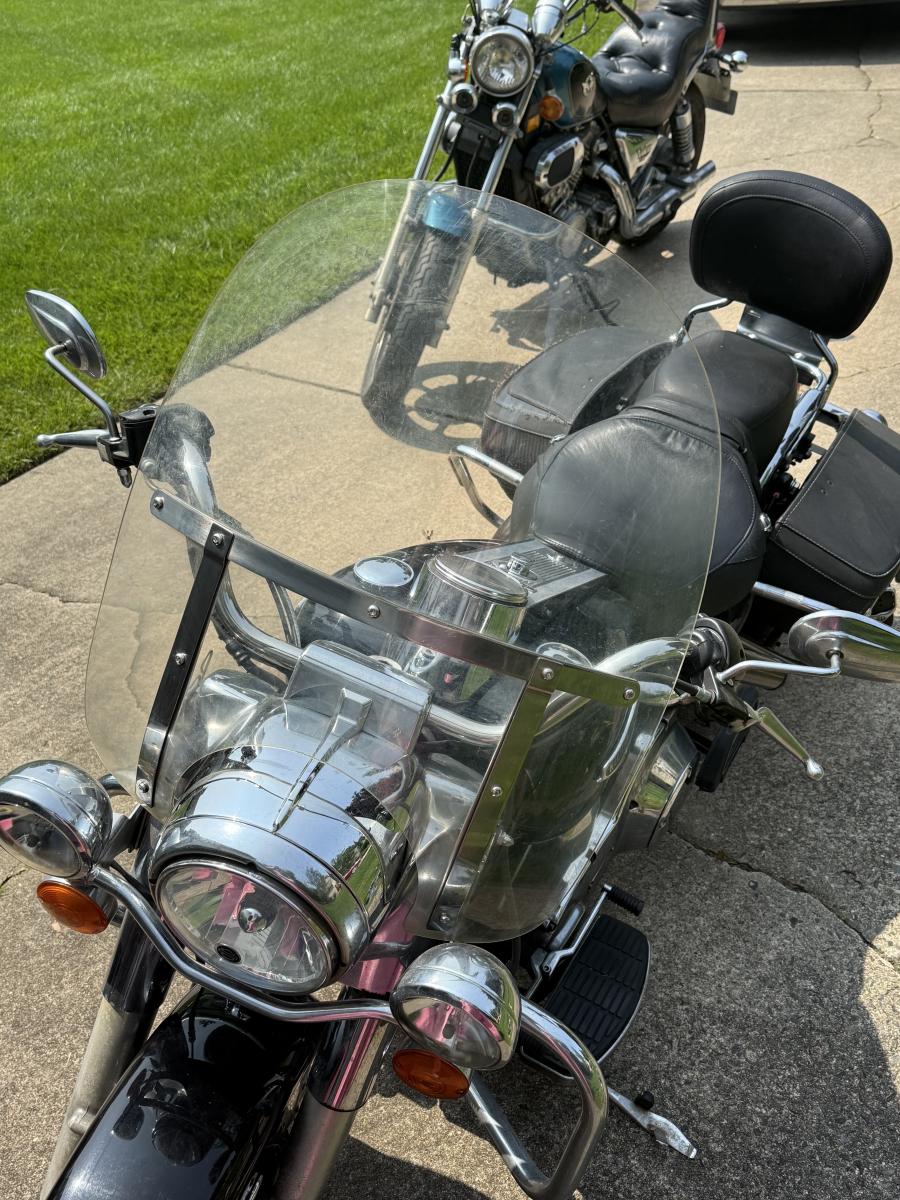 Starts but may need a new battery. Small dent in front of vehicle. One saddlebag has condition issues.