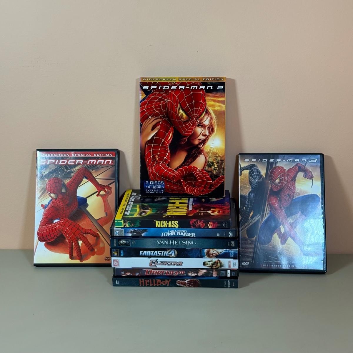LOT 148D: Superhero DVDs: Spider-man Trilogy, Kick-Ass, Hellboy & More