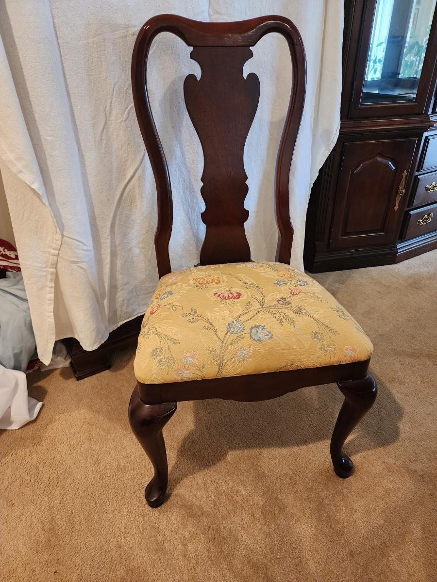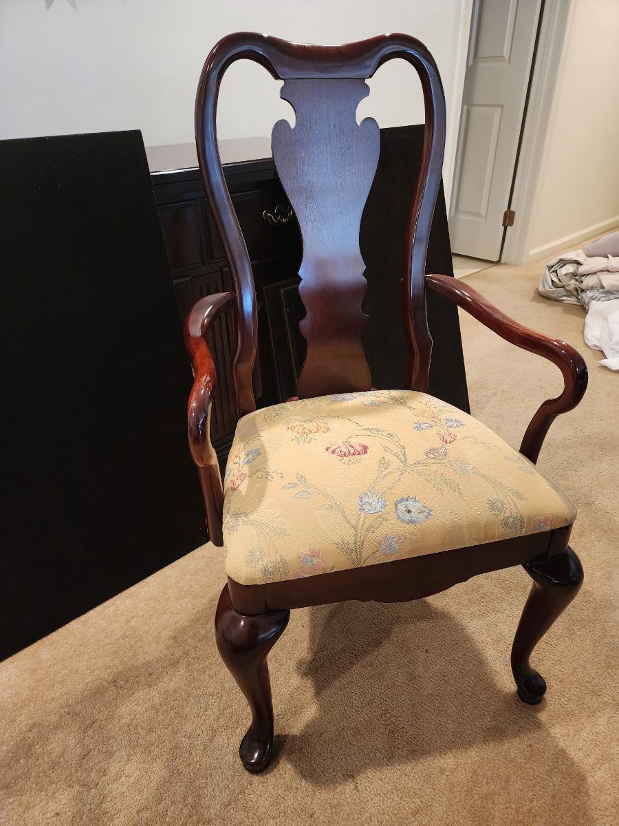LOT 334: Thomasville Chairs w/Upholstered Seat, circa 1990 - 2 Captain & 4 Side