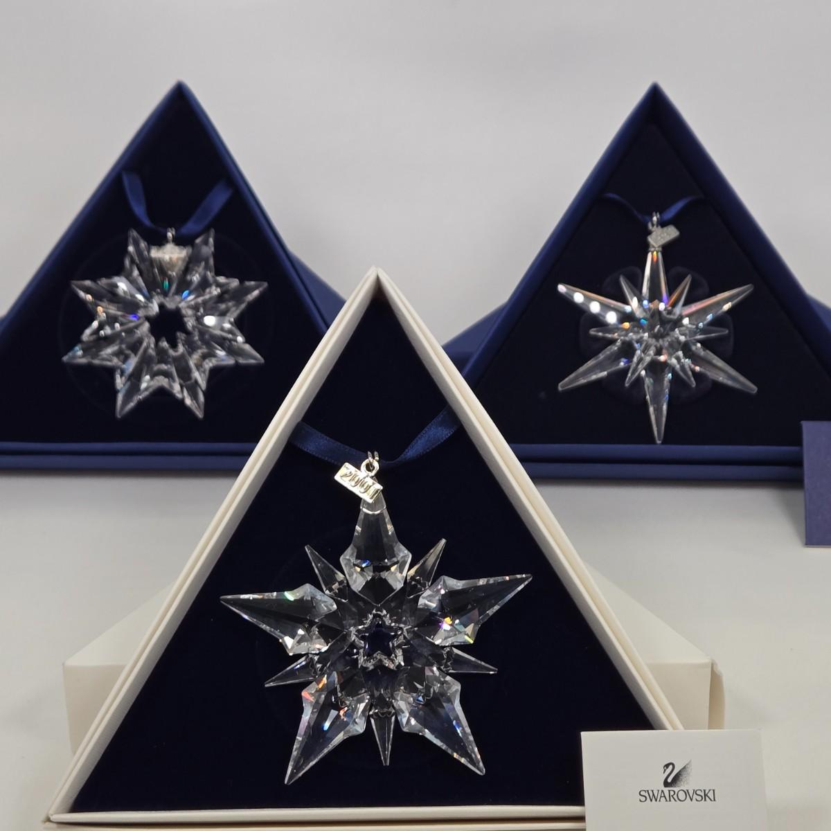 LOT 8: Swarovski 2001, 2003, 2005 Christmas Snowflake Ornaments / All in Original Boxes