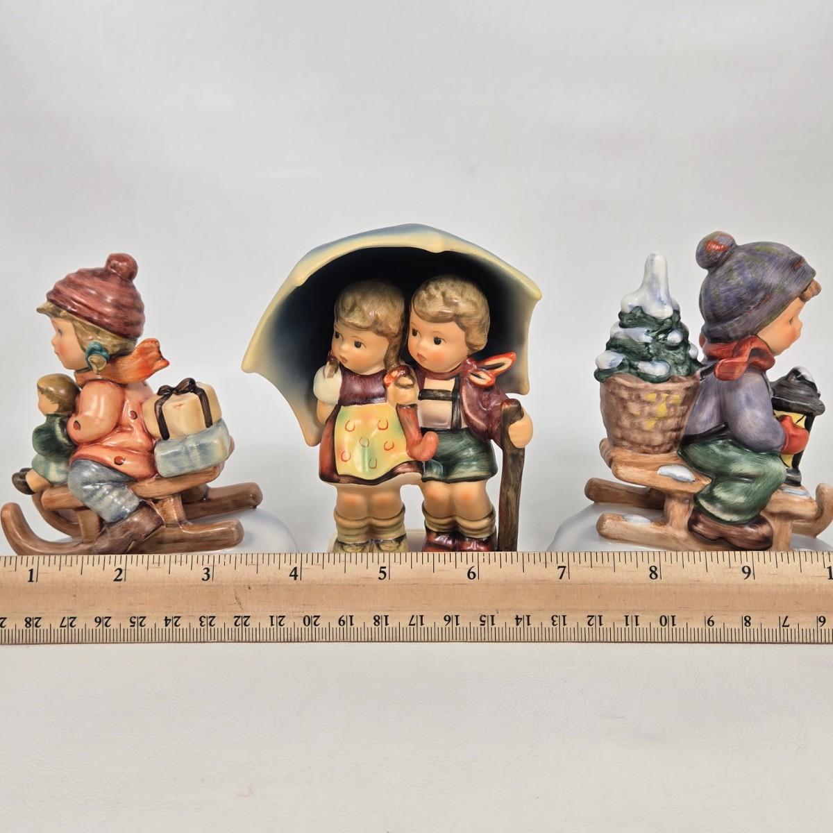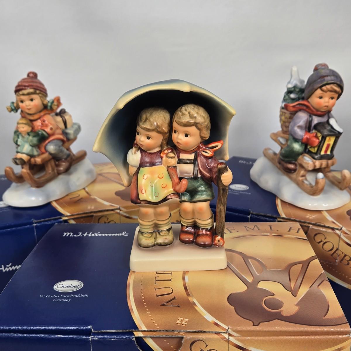LOT 26: Hummel Figurines: Stormy Weather, Christmas Delivery, and Ride Into Christmas/ All in Original Boxes