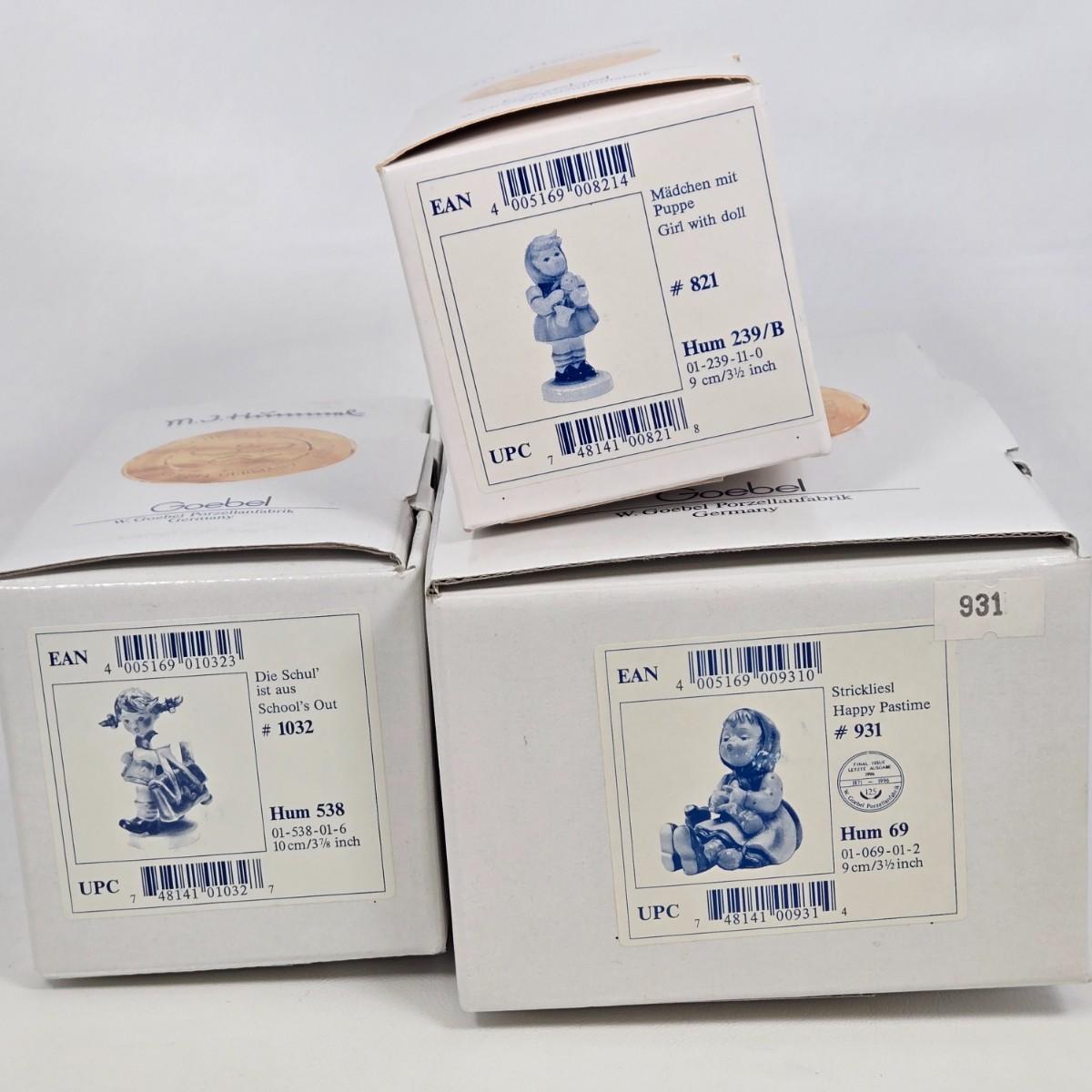 LOT 33: Goebel Hummels: Girl with Doll, School's Out, and Happy Pastime/ All w/ Original Boxes