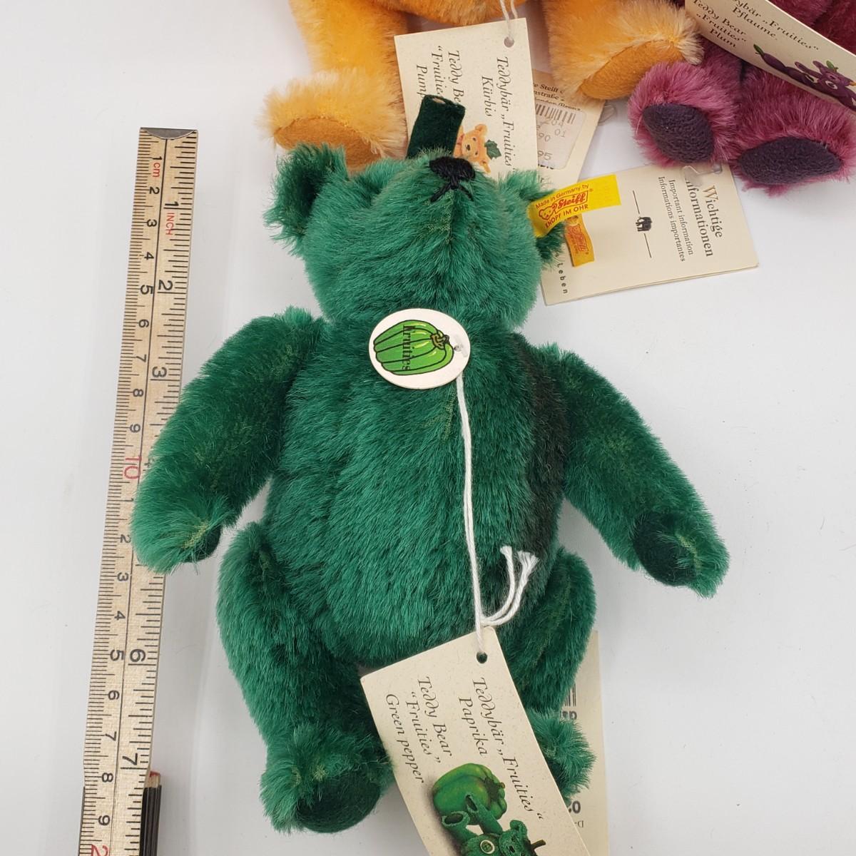 LOT 44: Steiff Fruities Teddy Bear Collection; Pumpkin, Plum, Pear, Green Pepper