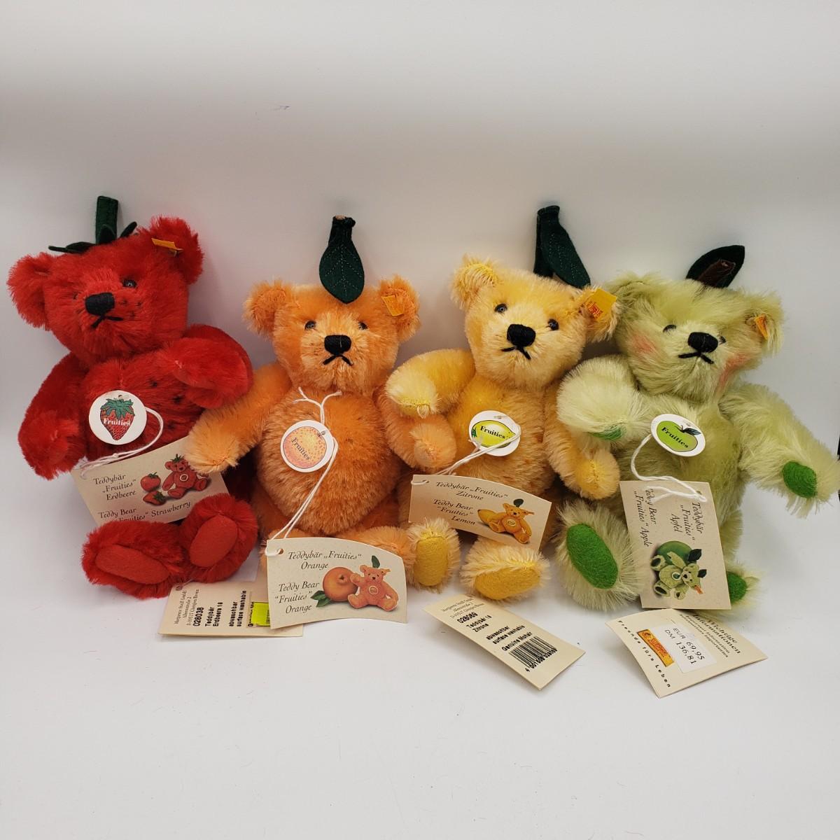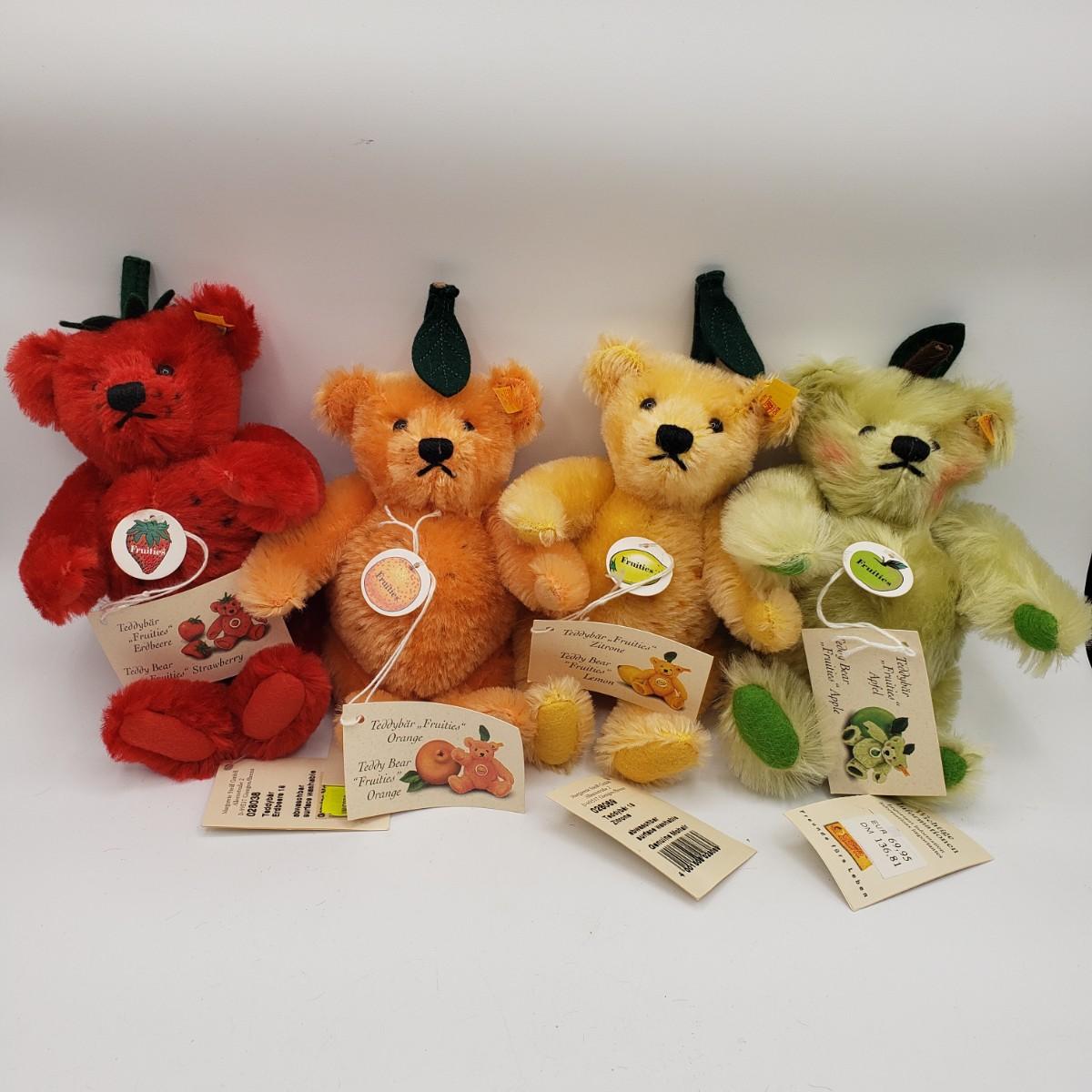 LOT 45: Steiff Fruities Teddy Bear Collection; Strawberry, Orange, Lemon, Apple