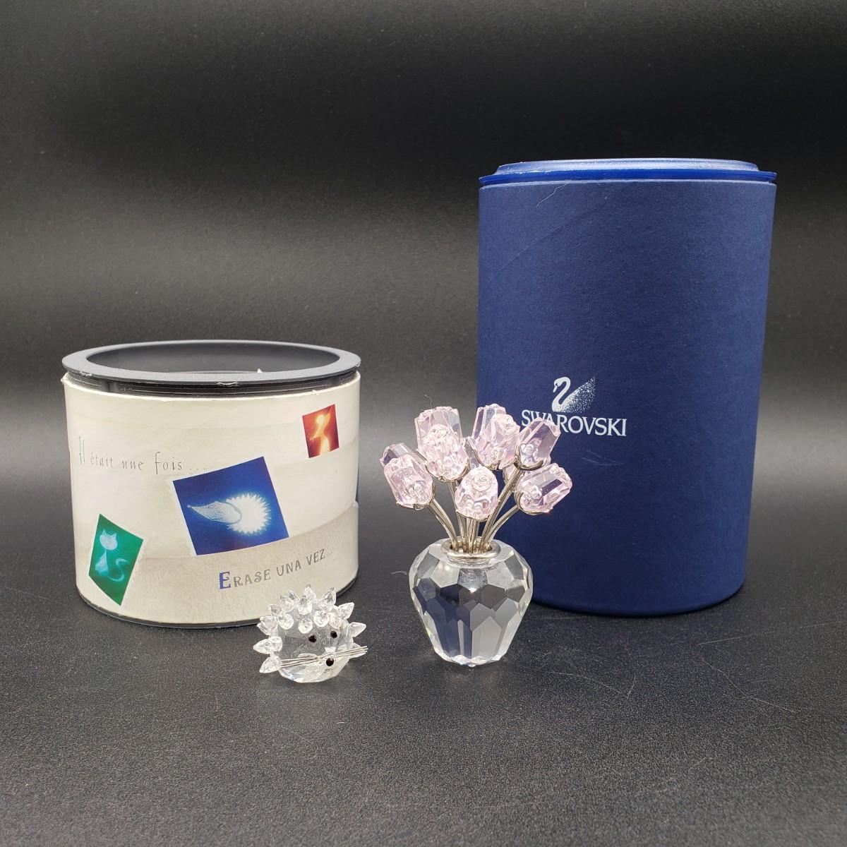 LOT 46: Swarovski Crystal Dozen Roses and Hedgehog in Original Boxes