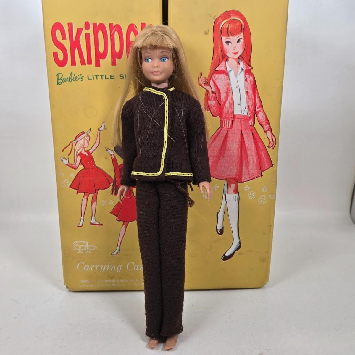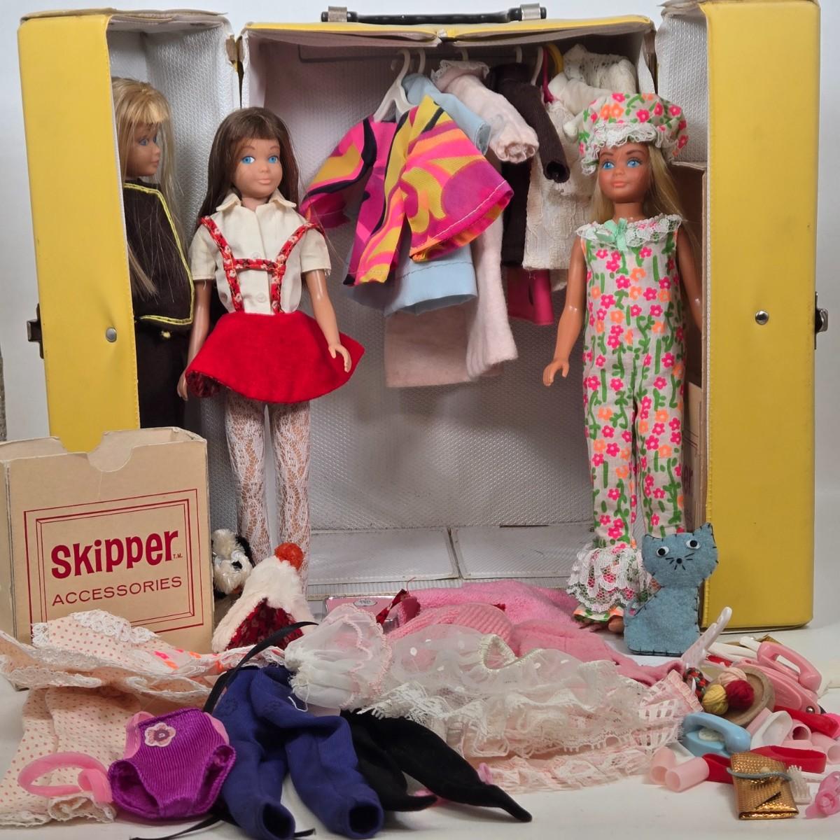 LOT 63: Mattel Skipper Carrying Case with Three Skipper Dolls, Clothes, and Accessories
