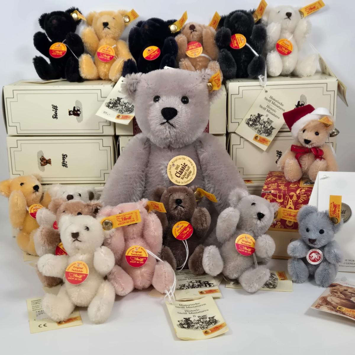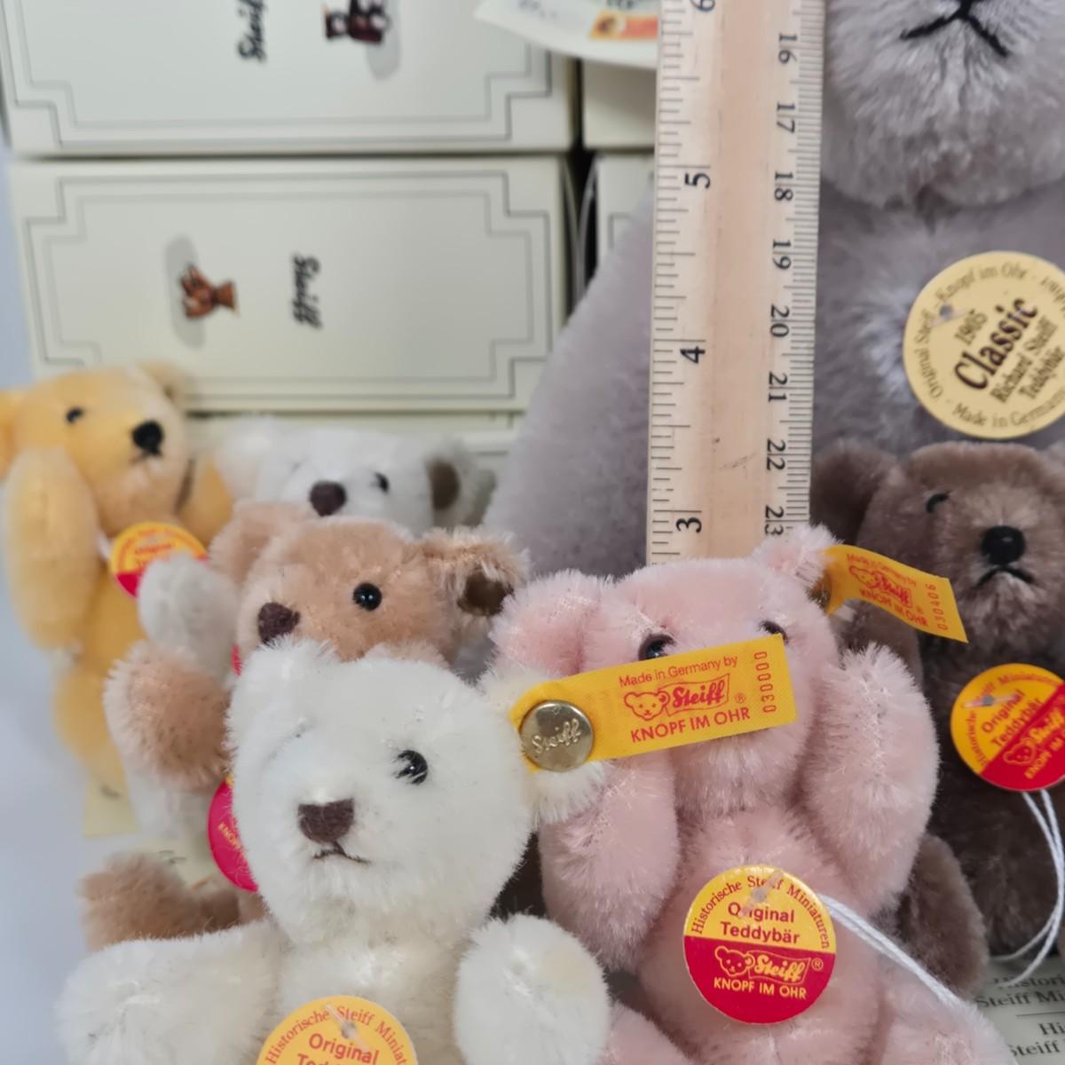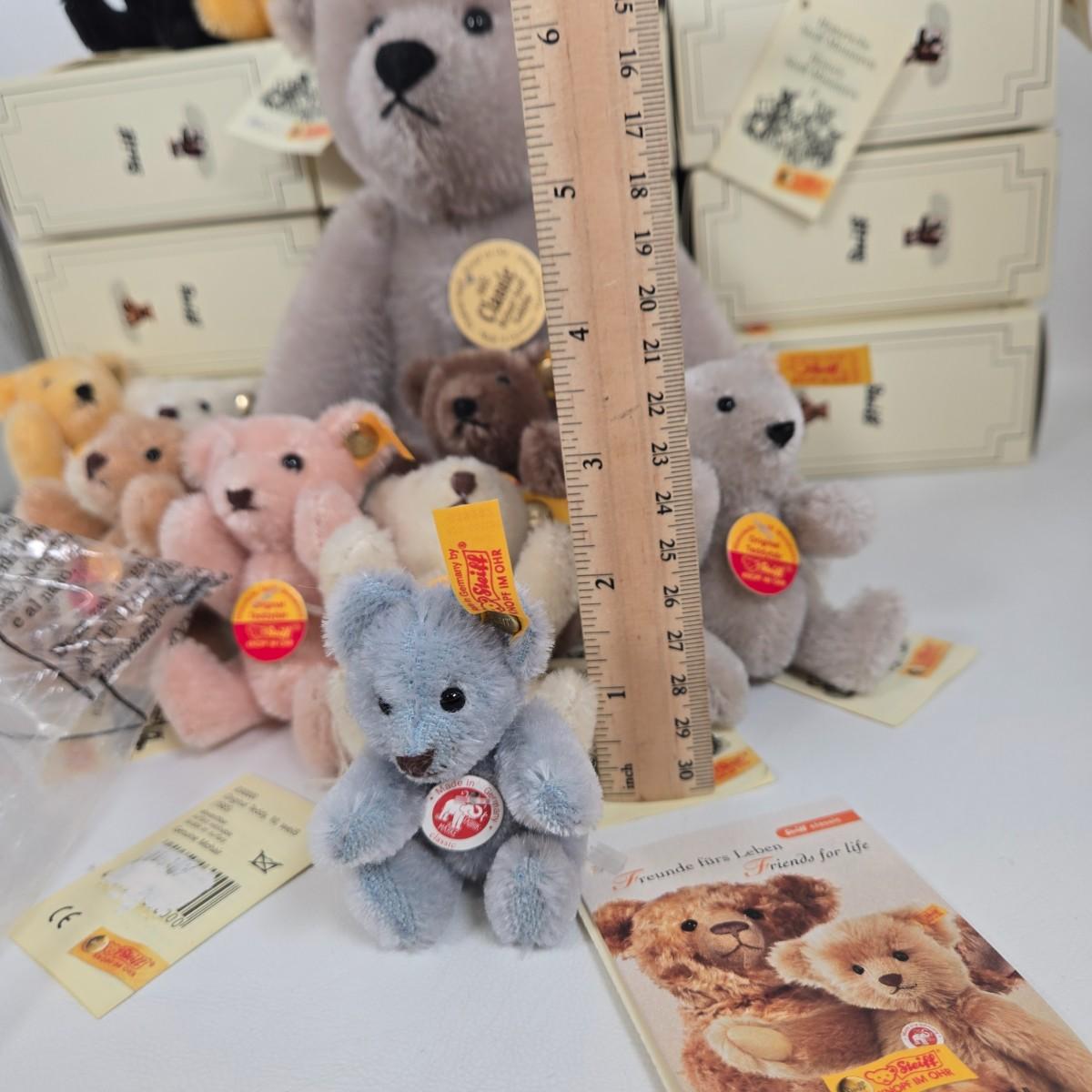 LOT 79: Multiple Mini Steiff Bears All with Original Boxes and Their Big Brother