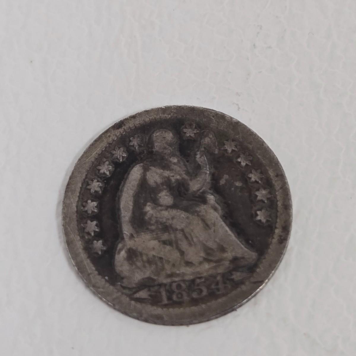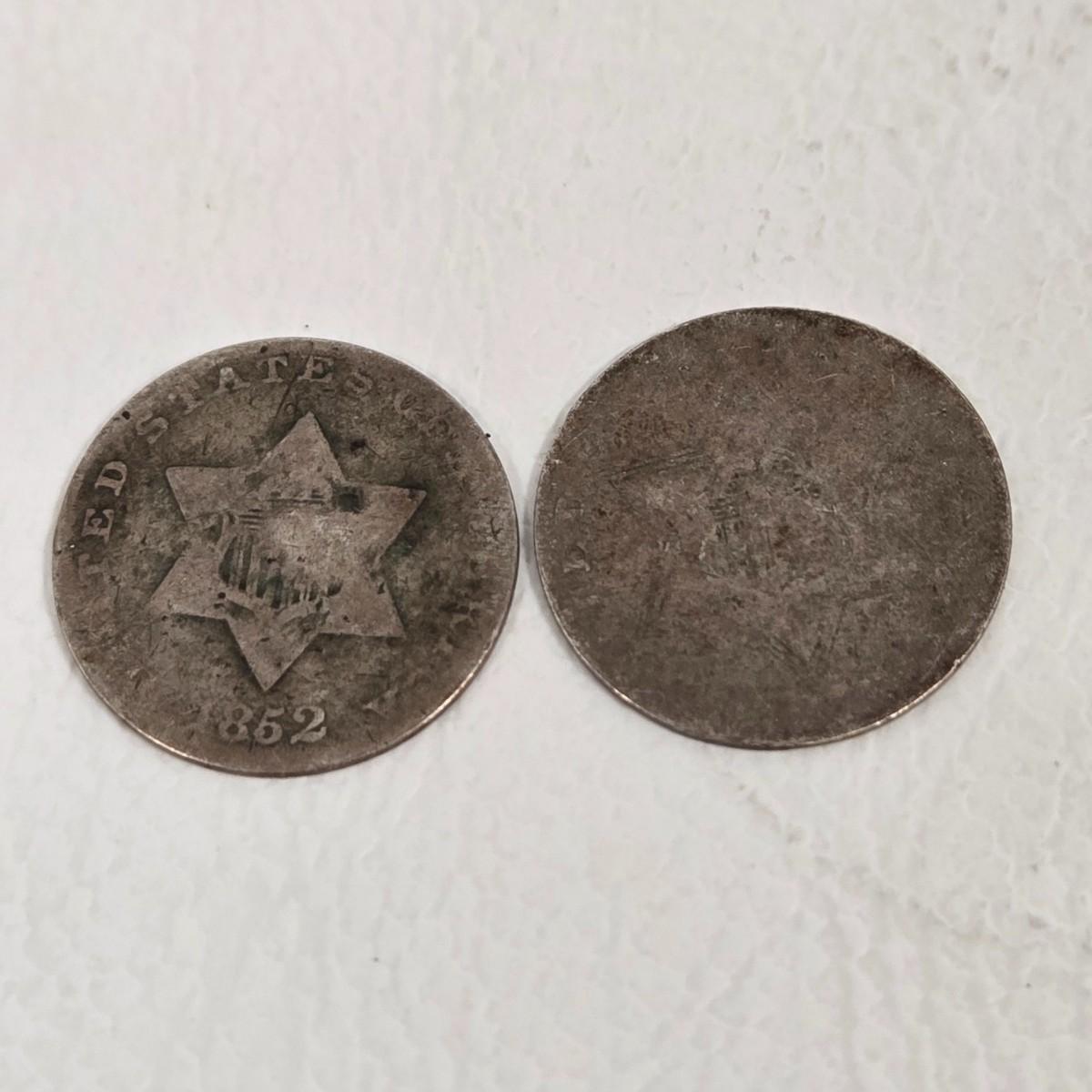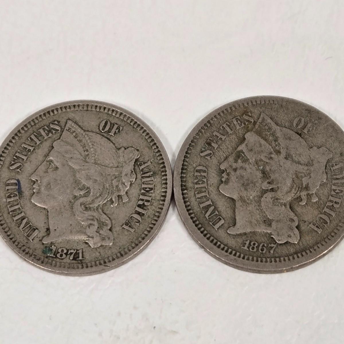 LOT 108: Antique U.S. Coins: Barber Quarter, Seated Lberty Dimes, and Half Dime and 3 Cent Coins
