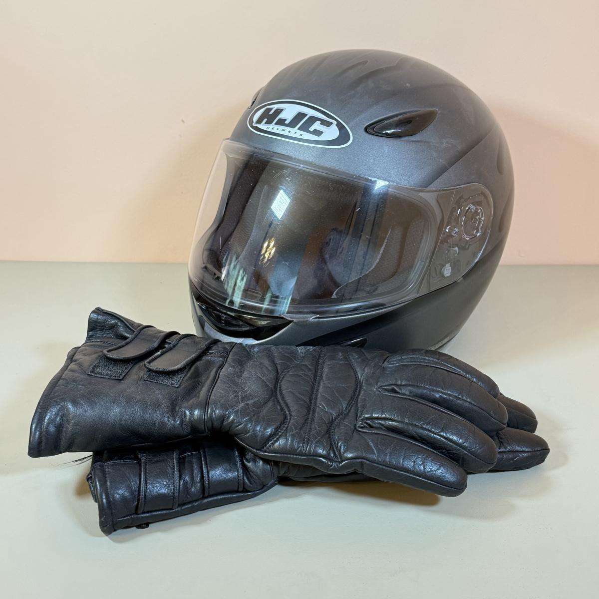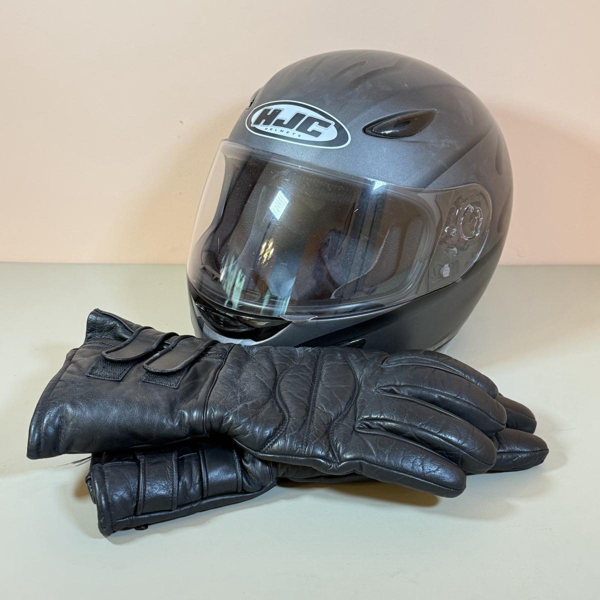 LOT 156D: HJC Smoke CL-14 Motorcycle Helmet w/ 3XL Winter Riding Gloves