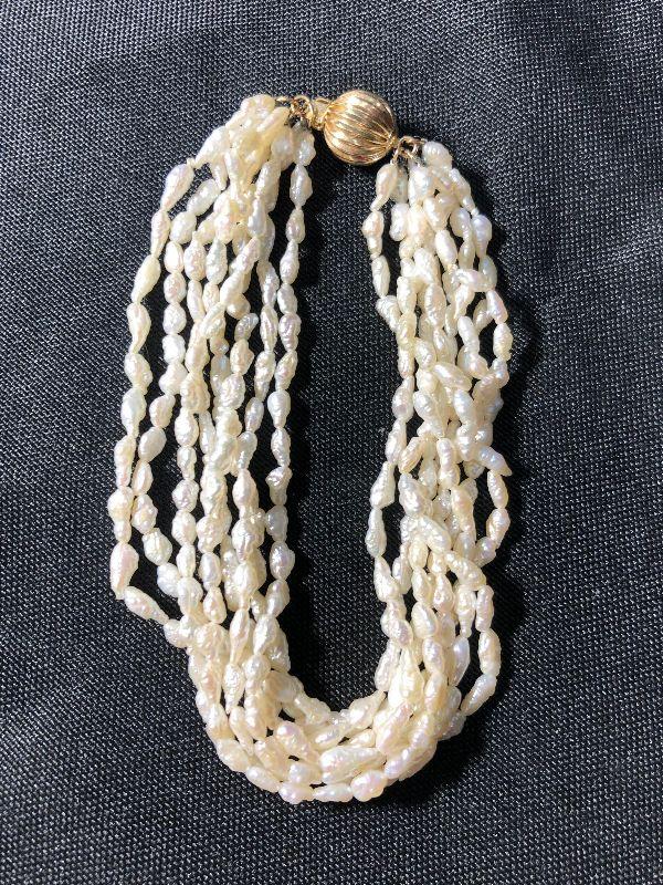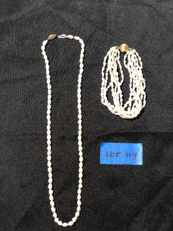 Lot 114 - 14 Kt Gold Pearl Necklace and 8-Strand Pearl Bracelet