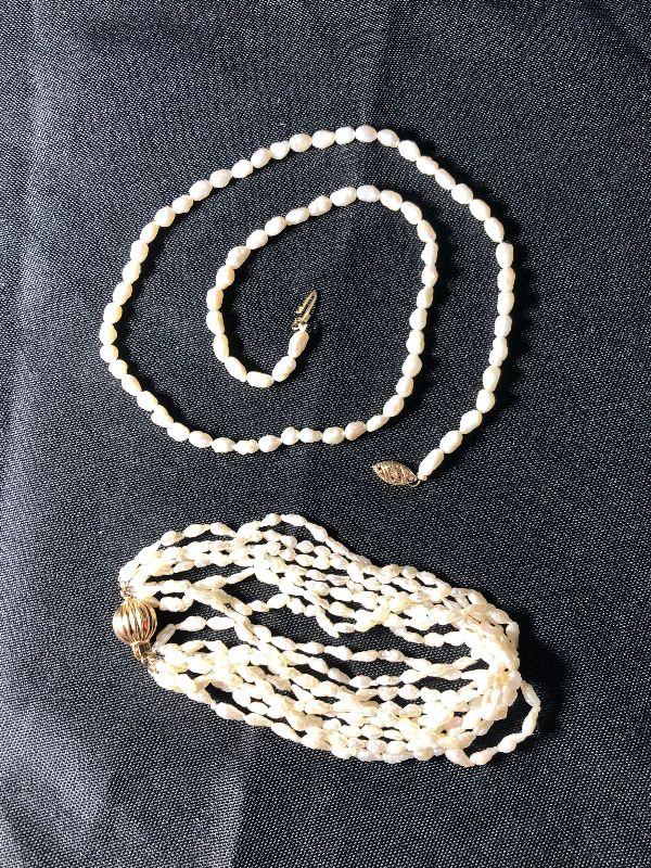 14 Kt Gold Pearl Necklace (18") and 8-Strand Pearl Bracelet