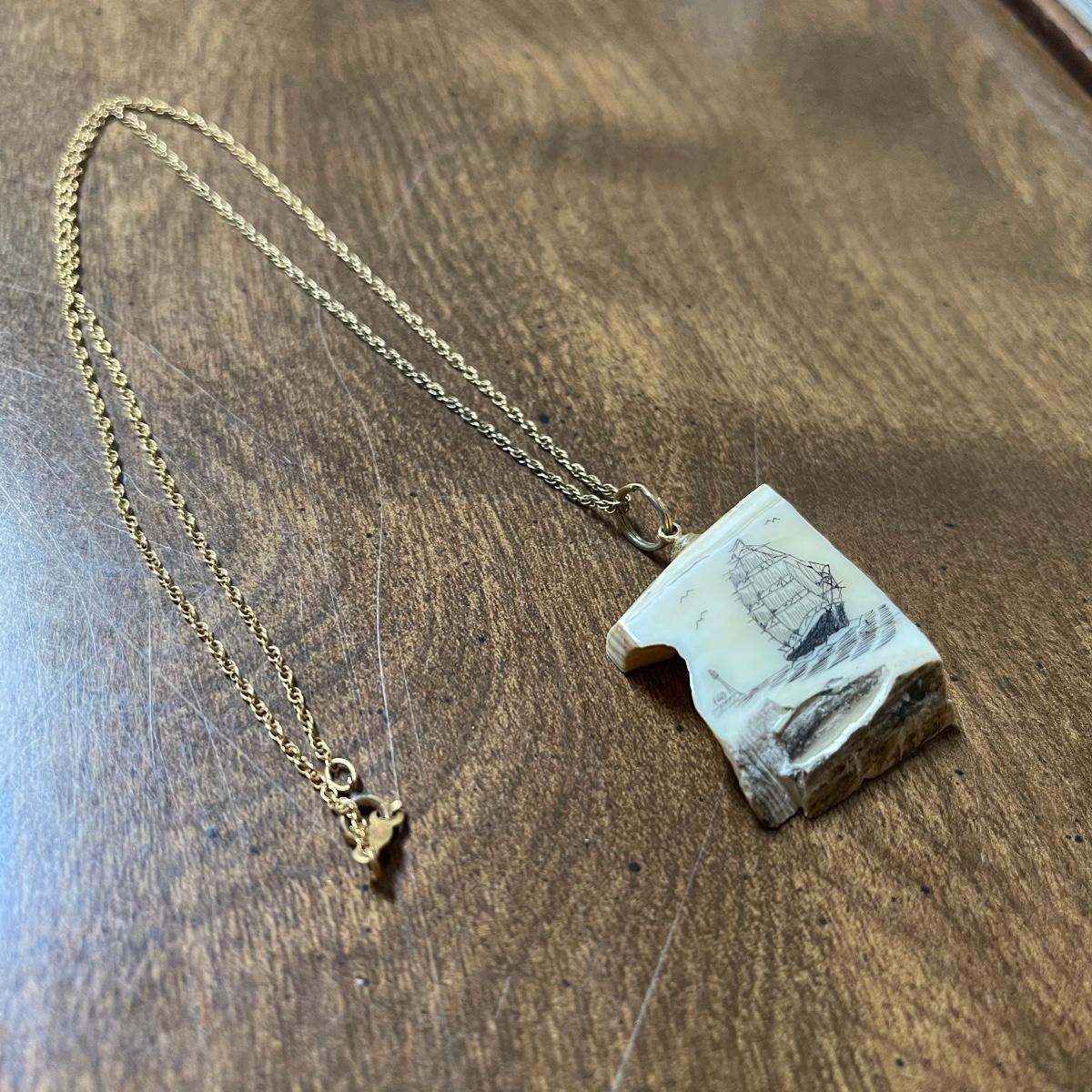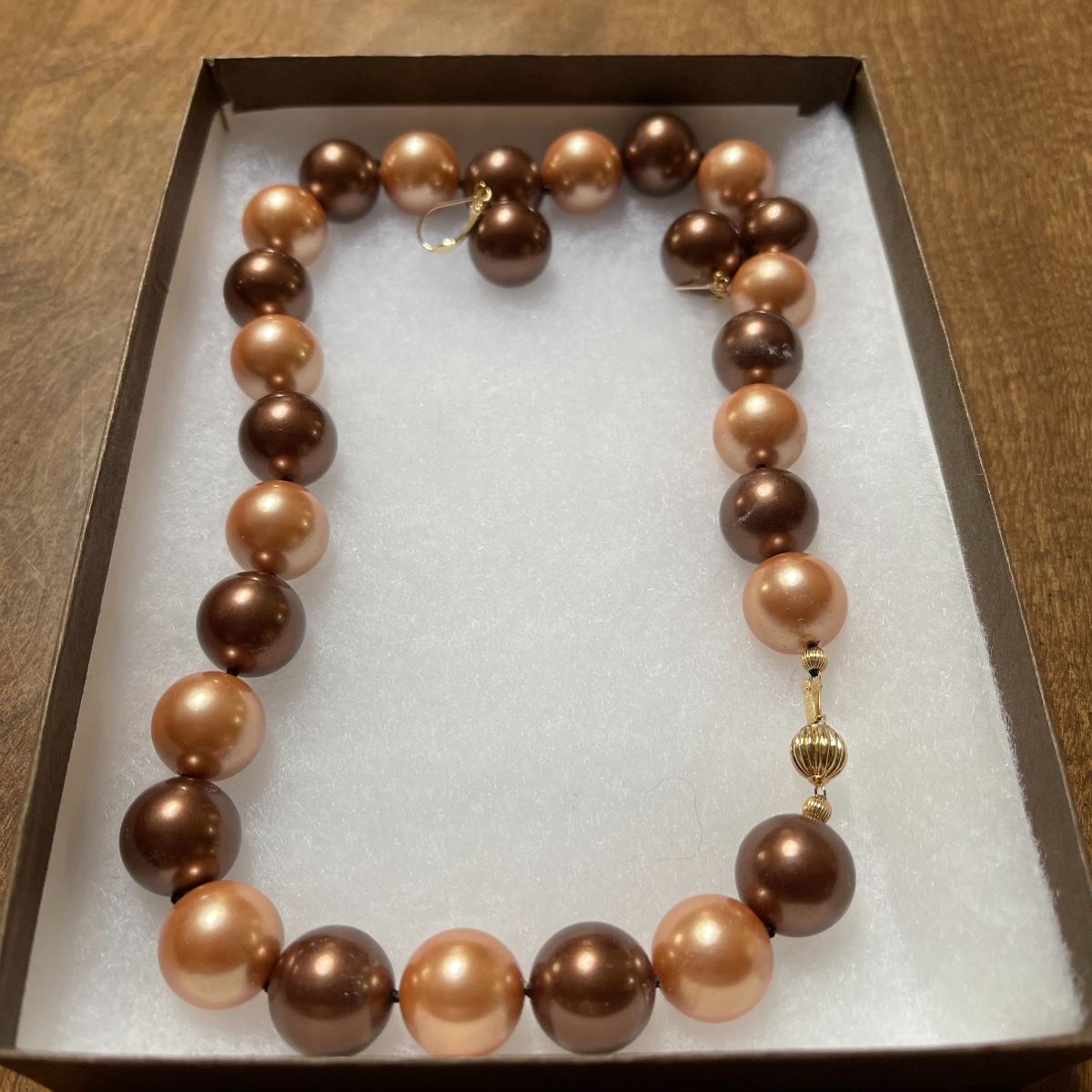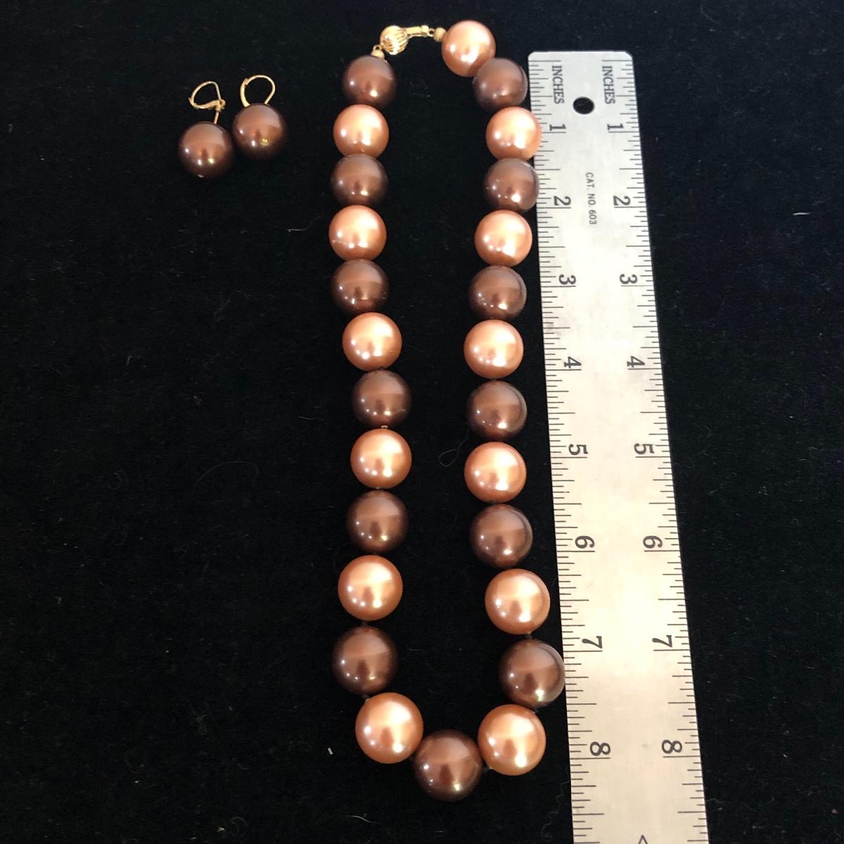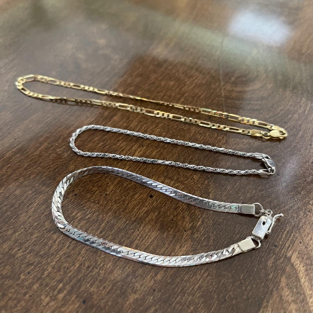 This lot includes 14K jewelry with the exception of the necklace which has a white pendant with a ship scene. There are two chain necklaces, two small bracelets and one anklet that are all 14k. The clasps on the pearl necklace and matching earrings are 14k also. Shipping Available.