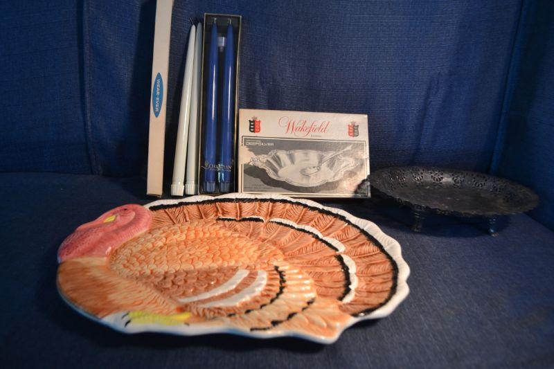 LOT 114 Turkey serving plate, candles and bowl