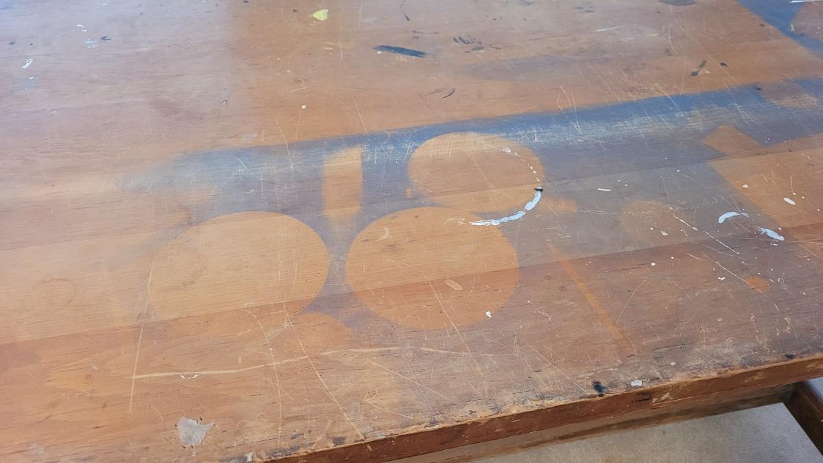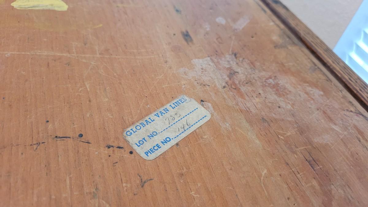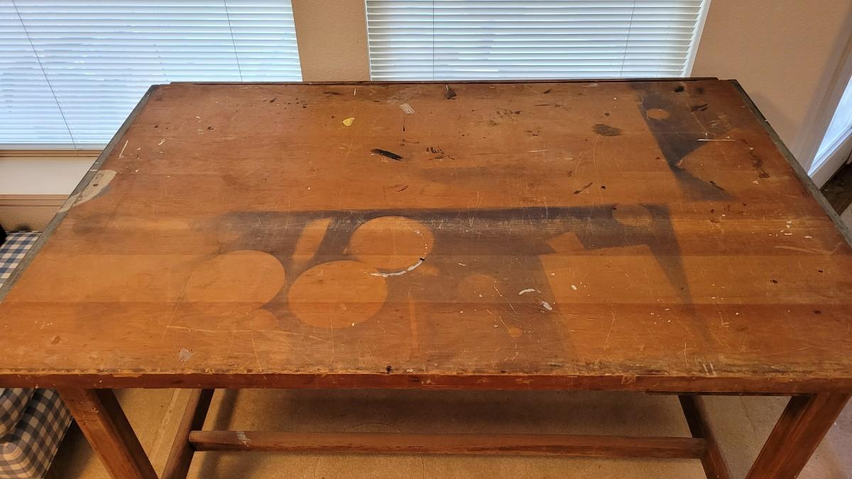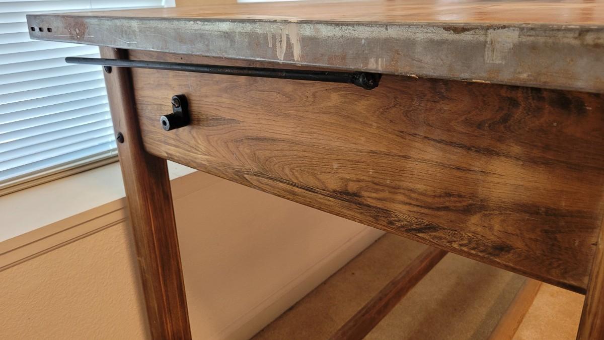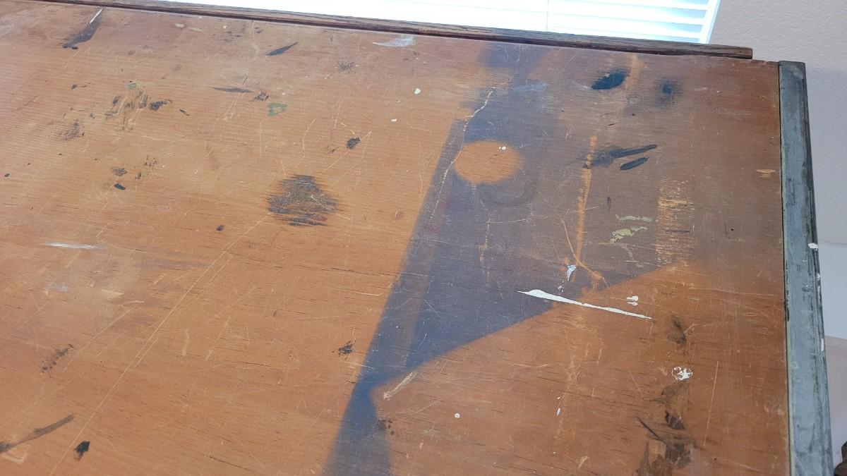 Lot 114: Vintage 2-Drawer Drafting Table / Kitchen Island (top comes off for transport or storage)