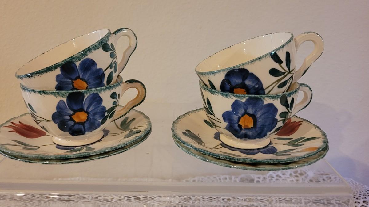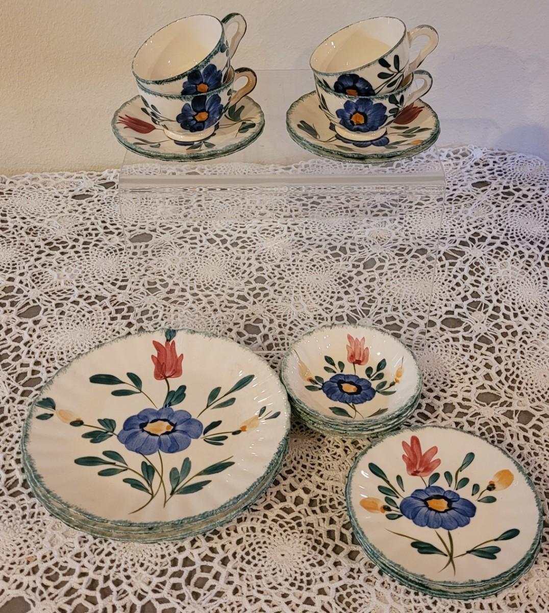 Lot 114: Blue Ridge Handpainted Set for 4 - with Center Blue Flower