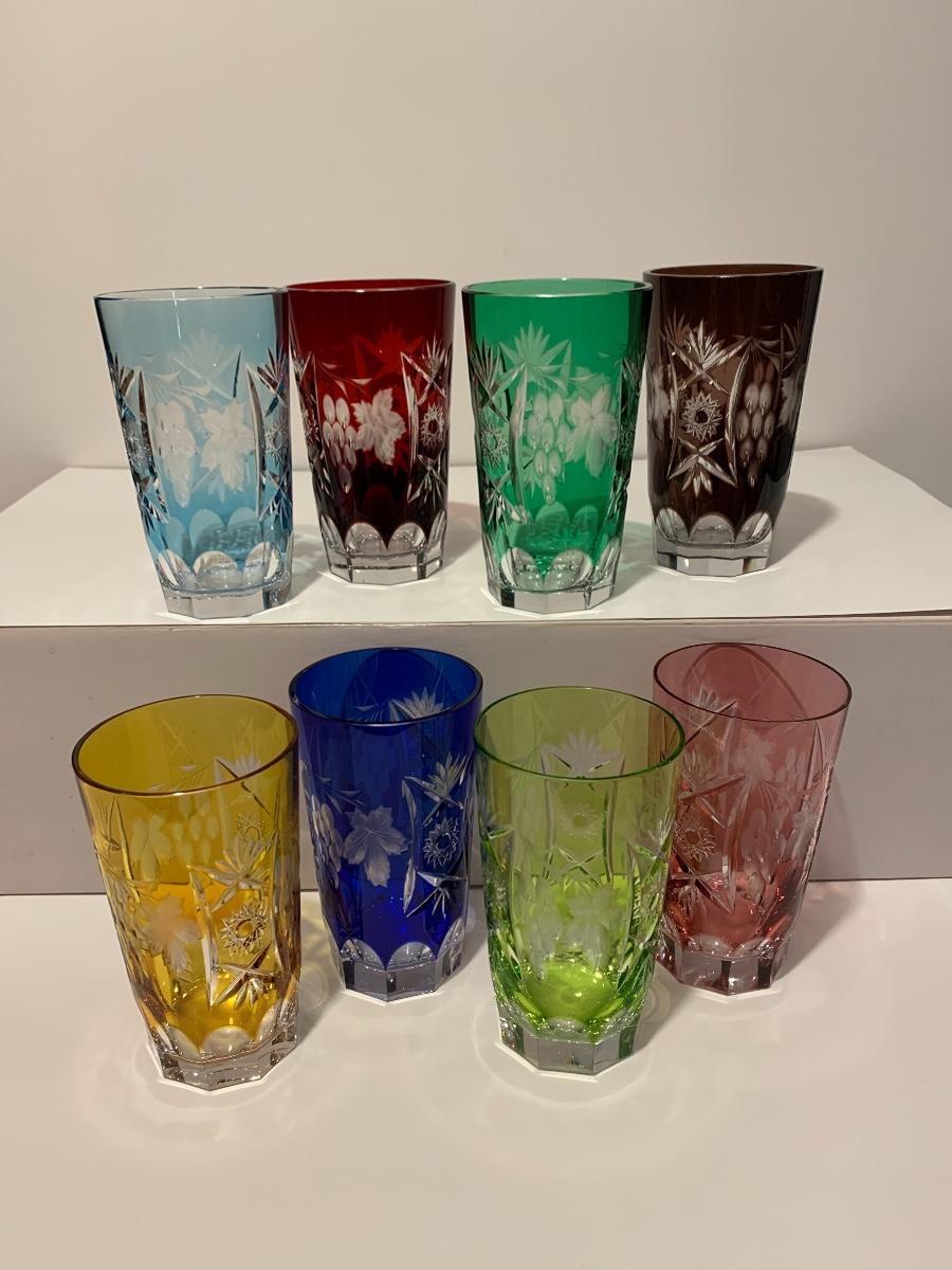 Beautiful set of 8 multicolored cut to clear tumblers from Germany Just stunning. They have had minimal use if any. The crystal is nice and clear without any residue. Please see all pictures as they are the best representation of the items. The pictures show condition, measurements if taken, and what is included in the lot. Due to the large amount that we photograph and the time frame, we are not always able to take measurements. All items unless noted, are pre-owned and have been used. If you purchased furniture, you must bring help. We do not allow one person to carry large furniture out on their own. Bring help, tools and a truck for the safety of our client’s homes, and your personal safety. Company policy. Thank you.