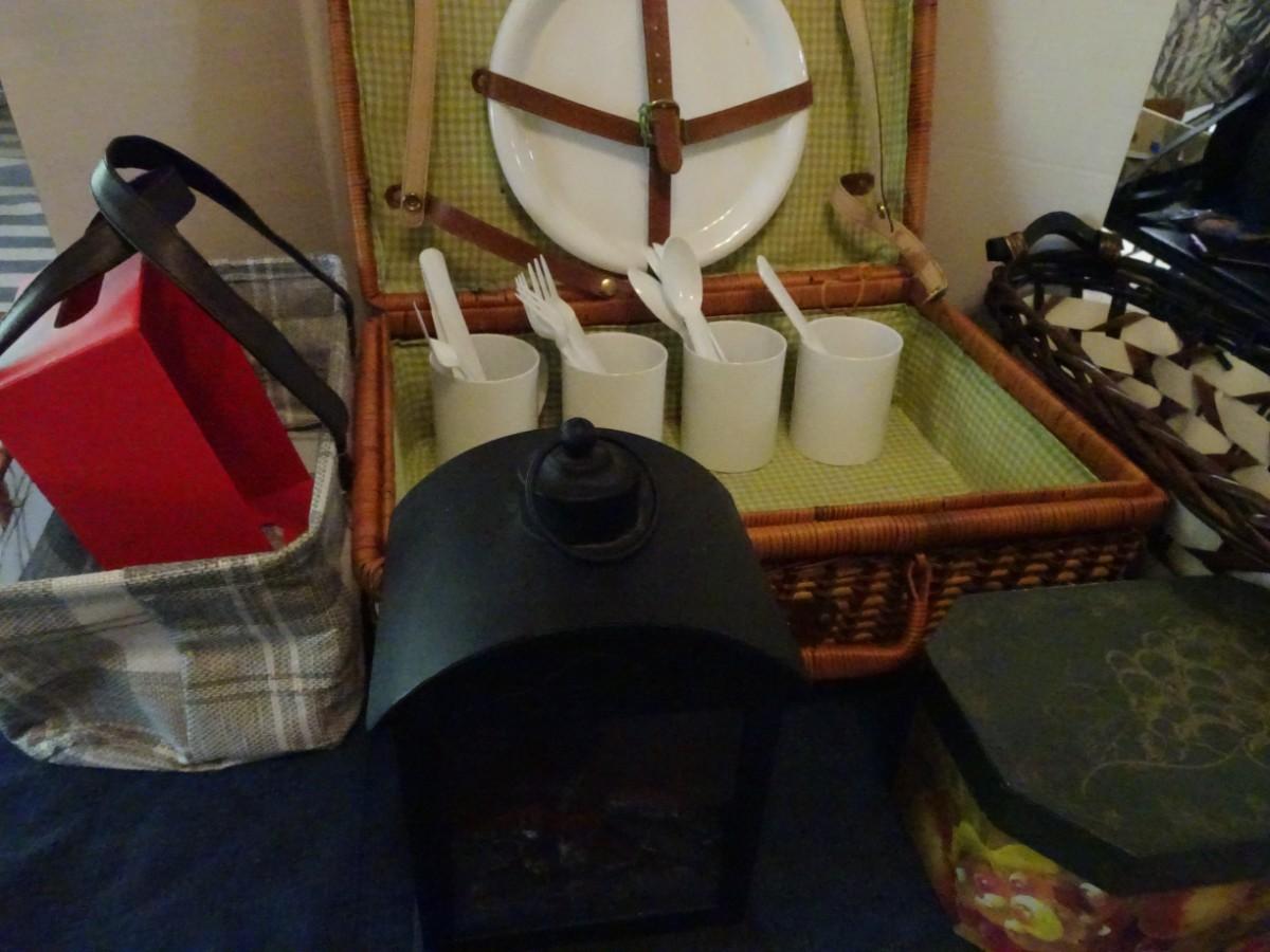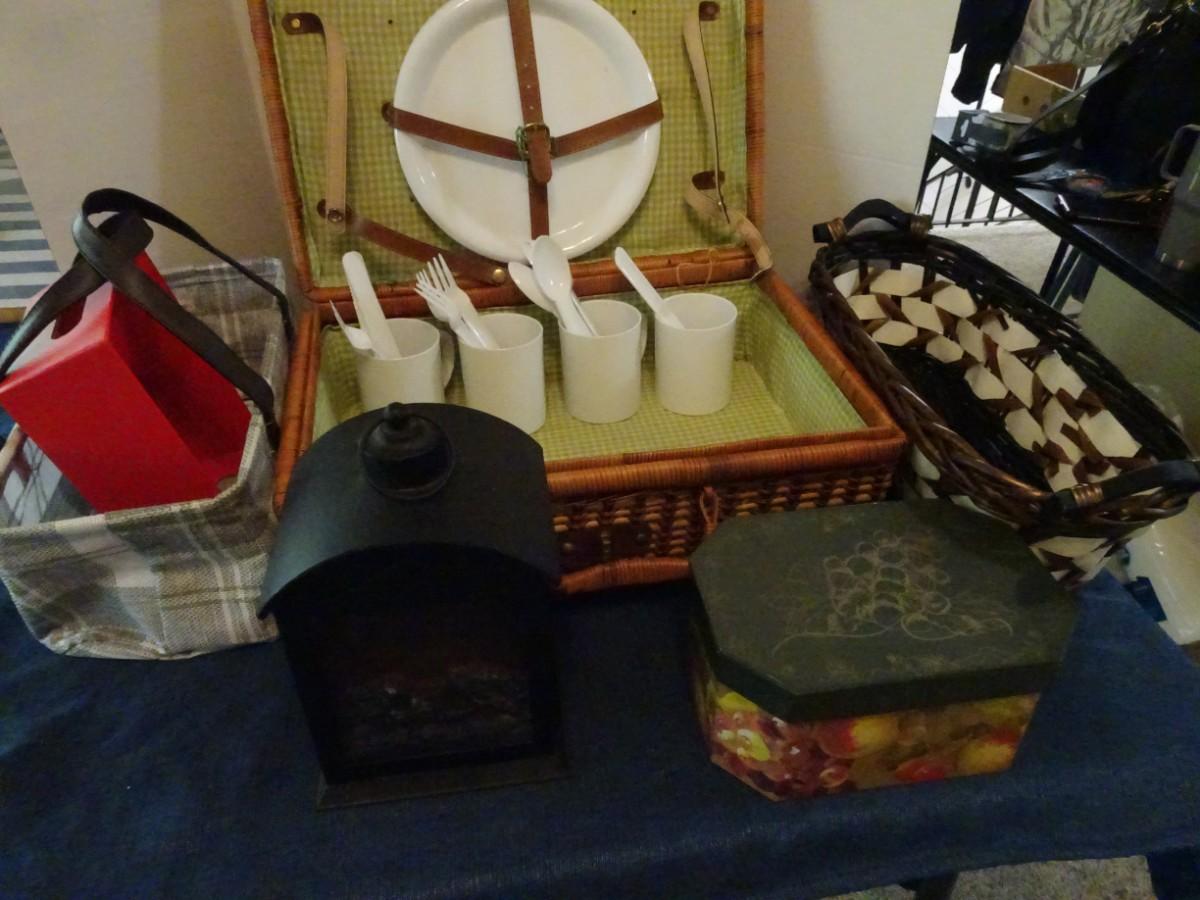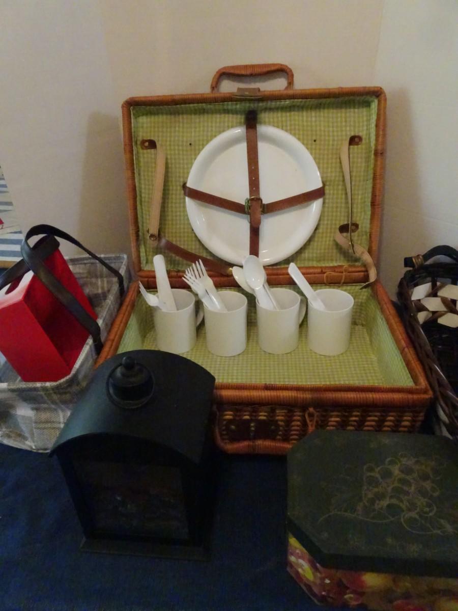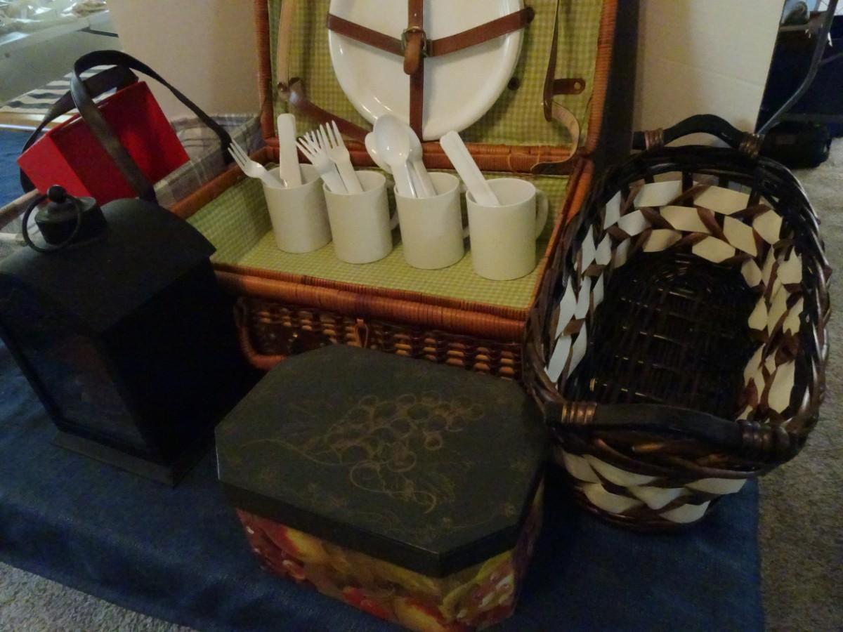 LOT 114. HOME DECOR AND PICNIC BASKET