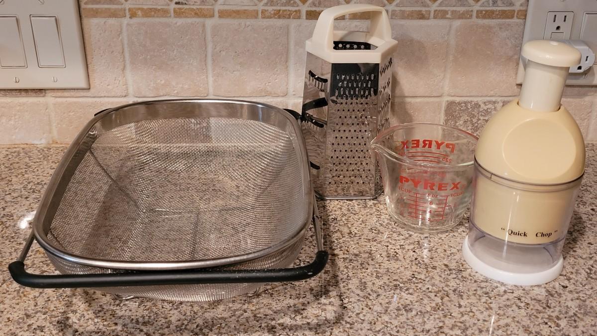 Lot 114: Kitchen Lot - Strainer, Grater, Chopper and Measuring Cup