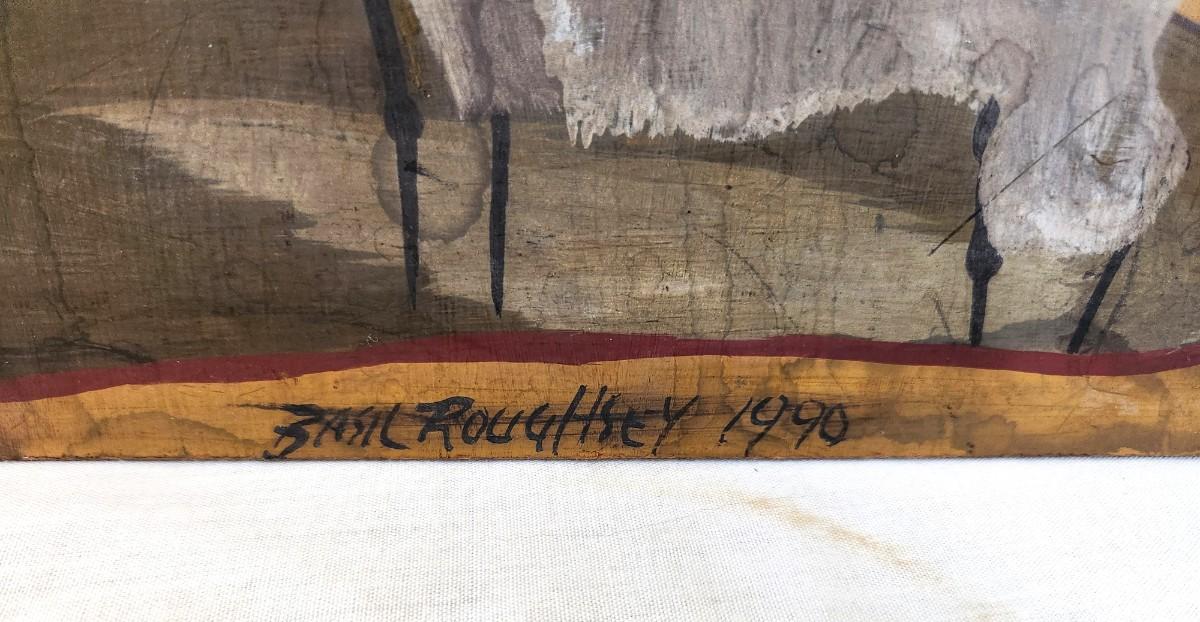 Original painting by Listed New Zealand artist Basil Roughsey (1923 - Deceased), dated 1990. Acrylic on board. This piece has been in storage and needs a minor cleaning. Measures 10.75" x 17.5".