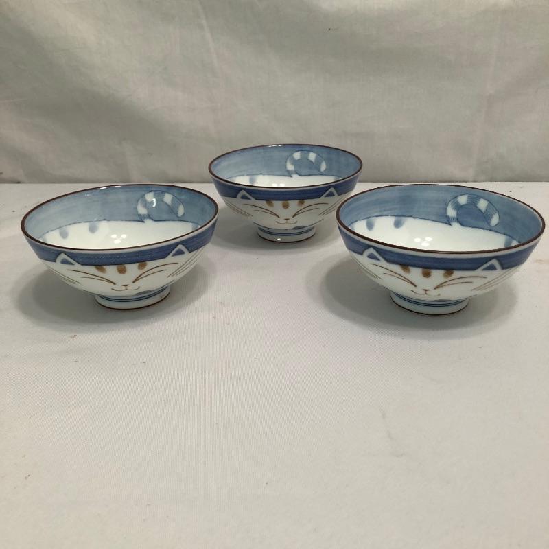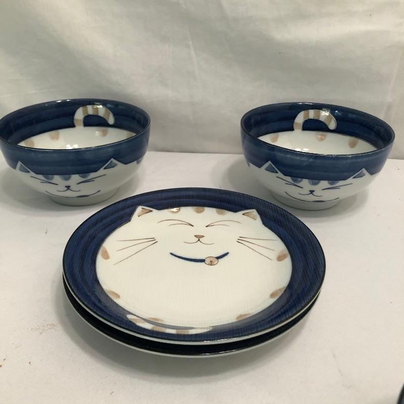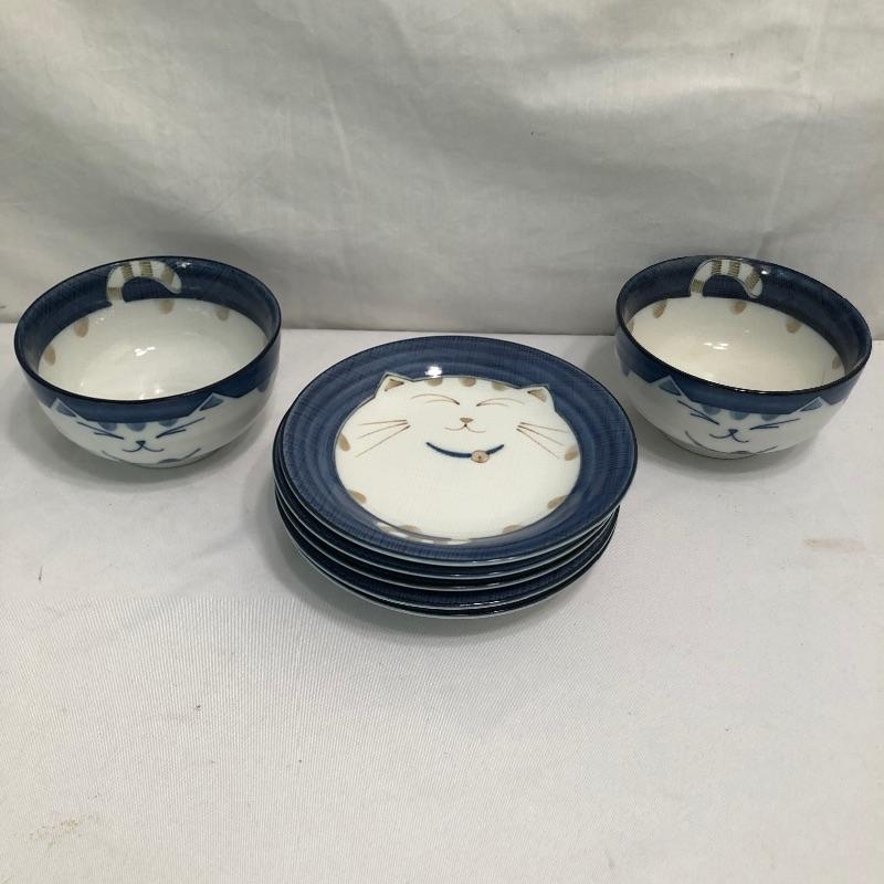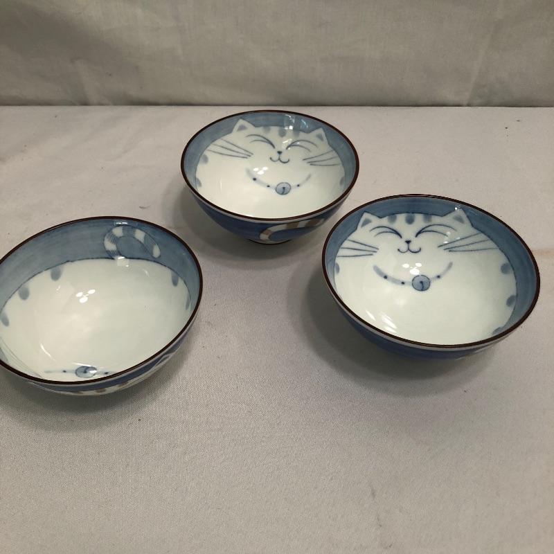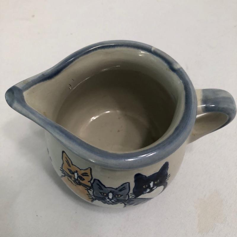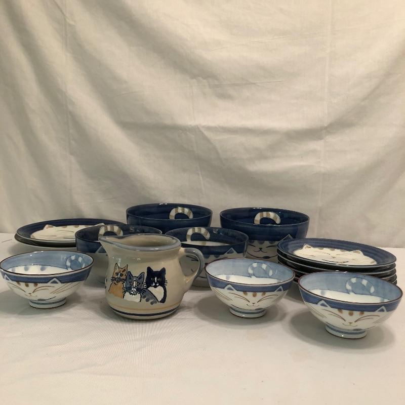 This adorable lot isn’t just for cat lovers, they are so cute! One set includes two salad and five smaller plates and two large and two smaller bowls. A third set of three matching bowls (they look very much alike to the others but they do have different makers marks). Also included is a small pitcher marked USA made and two black and white porcelain cats with black egg cups.
