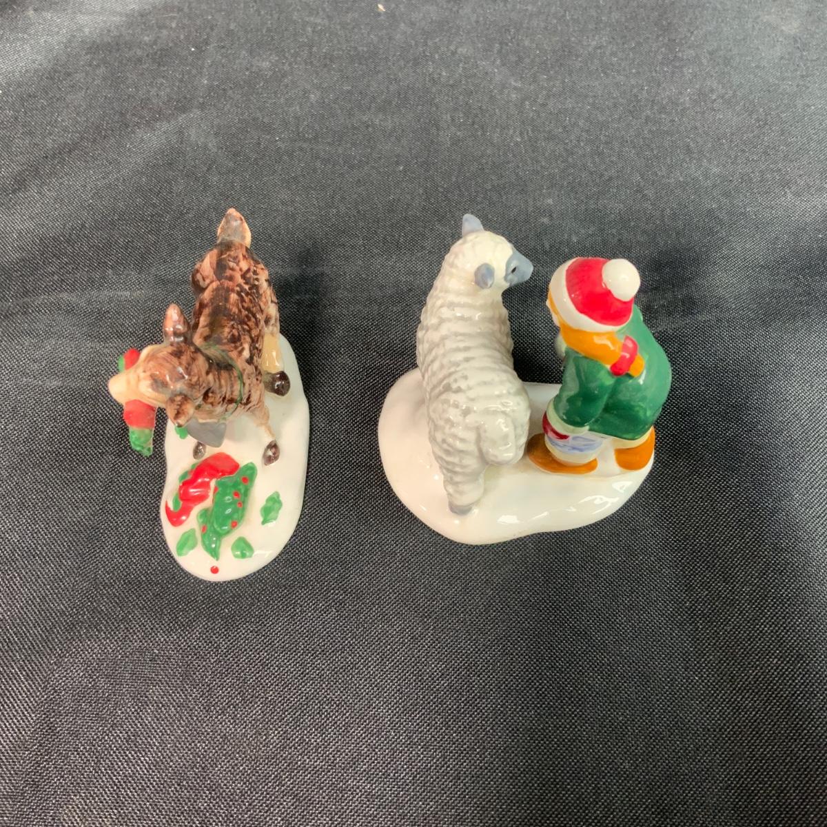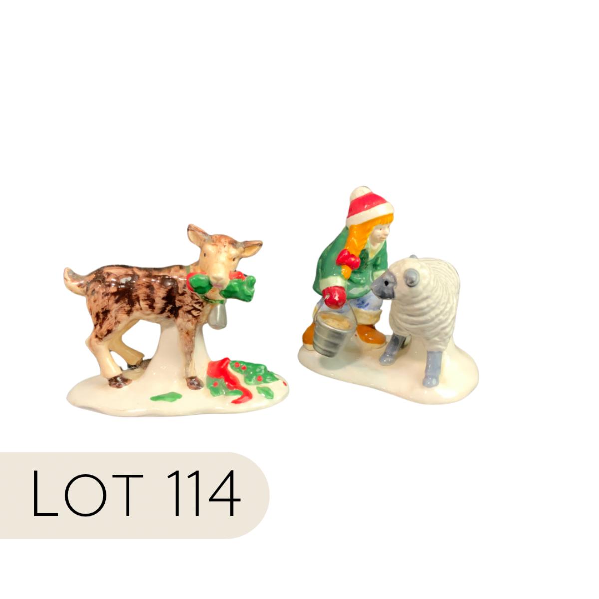 Who wouldn’t want to spend Christmas at the Farm? That sounds amazing, doesn’t it?! You can live vicariously through these two figures. A baby calf that probably shouldn’t be eating that wreath, and a sheep that is probably going to knock that child over and change the tone of the whole day. Please see photos for details and condition. ::: Shipping is available on this lot. If you require shipping you must let us know at the close of the auction. We will coordinate with you after the item has been won. Shipping fees will include insurance up to or exceeding the value of all items being mailed. If you have any questions regarding this lot please contact the auctioneer either via this website, by direct email or by phone. PICK UP TIMES and other important information can be found in the TERMS and DESCRIPTION of the auction. Please take a look for pertinent information. Thanks! Any condition statement is given as a courtesy to a client, is an opinion, and should not be treated as a statement of fact. Reference to condition written, oral or within a condition report shall not be regarded as a full account of condition and may not include all defects, alterations, or restorations. Absence of a condition report does not imply a lot is flawless or lacking imperfections or damage. Katherine’s Auction & Appraisal Service shall have no responsibility for any error or omission. Returns shall not be accepted on the basis of condition.