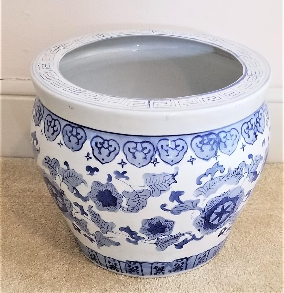 Lot #114 Decorative Blue/White Garden Pot - Asian Styling