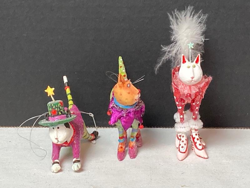 Lot #114 Dept.56 Patience Brewster Christmas Krinkles Cat Ornaments