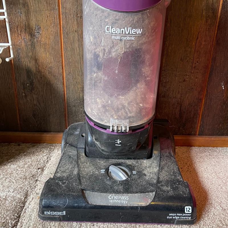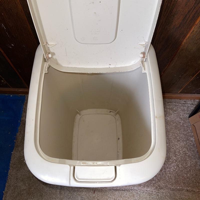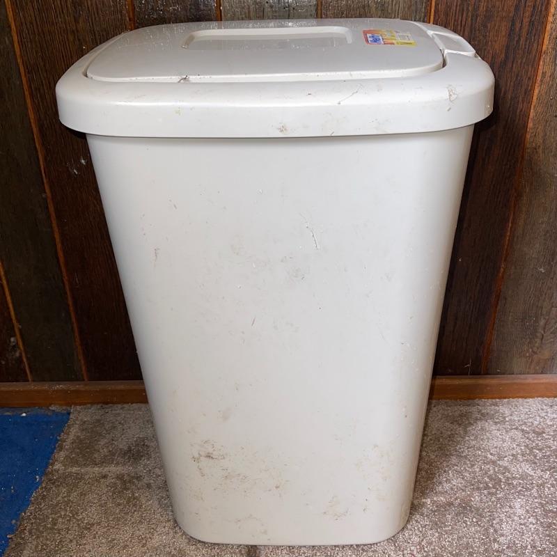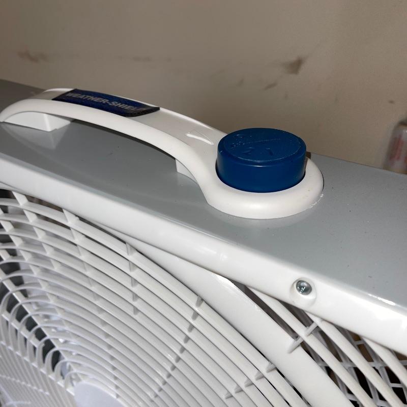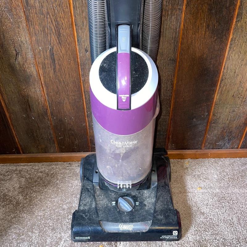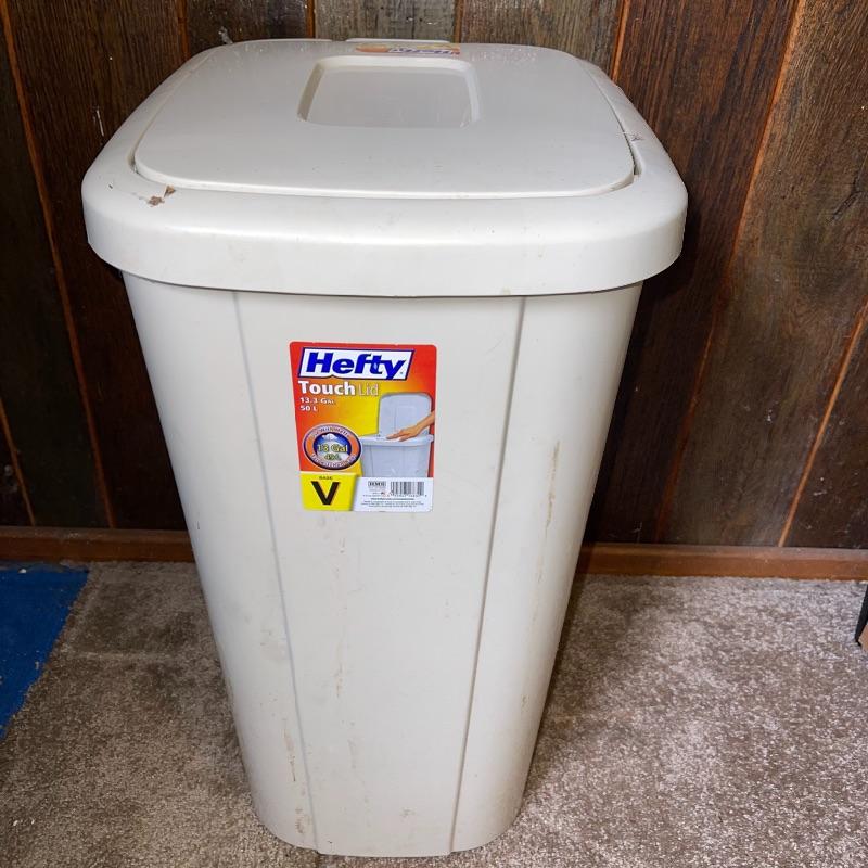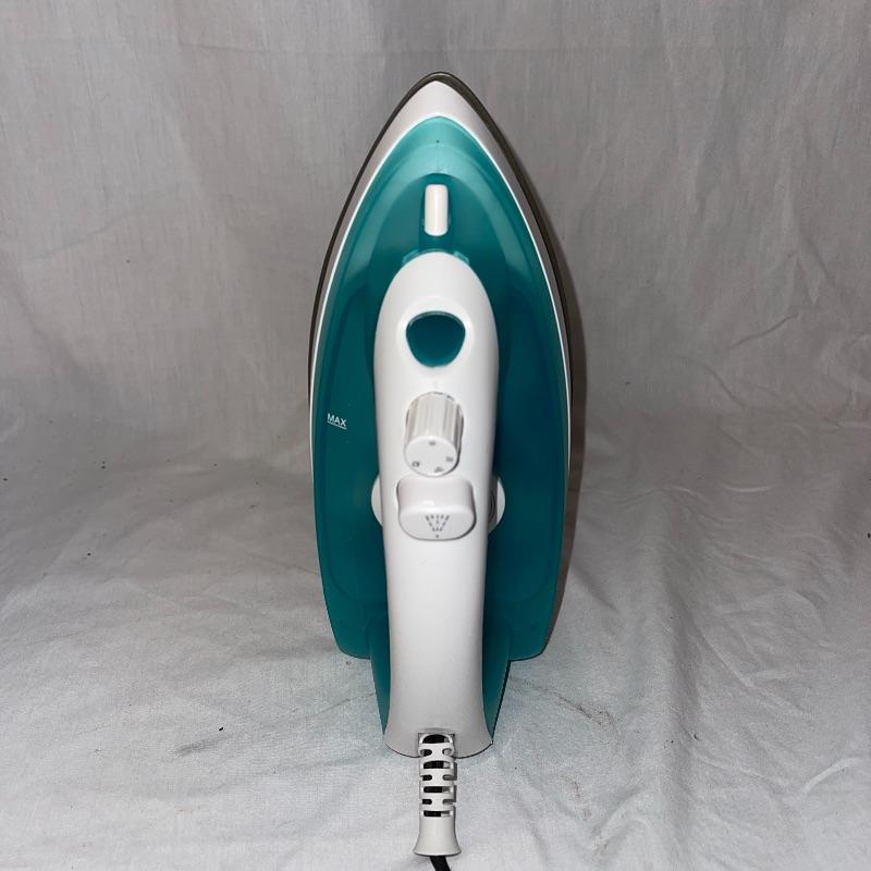 Household essentials which includes, an ironing board, two box fans, wooden hangers, shower rack, a battery wall clock, a bissel vacuum, a dirt devil handheld vacuum, an iron, a pulldown blind sill in wrapping, a lidded plastic trash can, and a small plastic waste basket. Both vacuums, both fans, and the iron turn on when plugged in. Good for some spring cleaning!