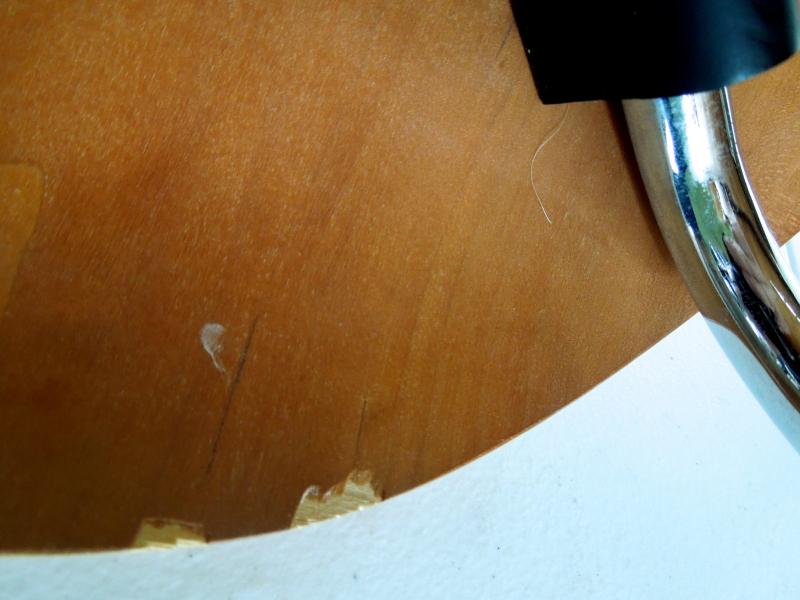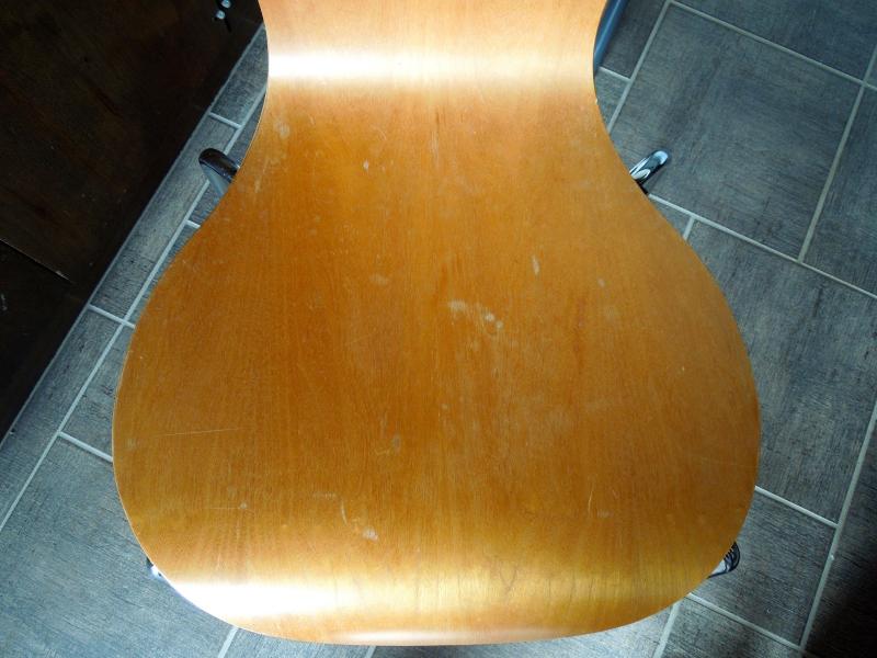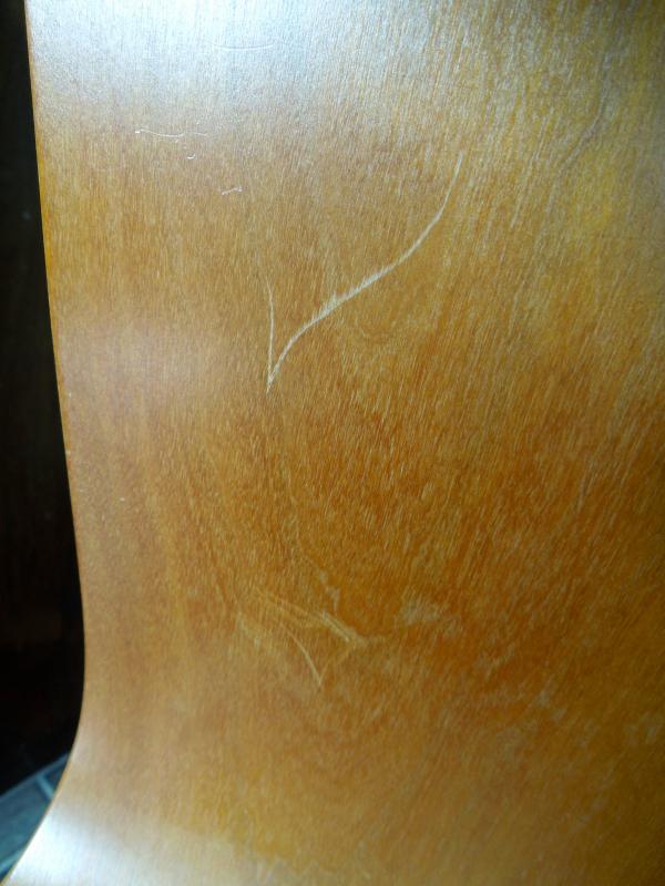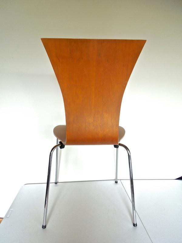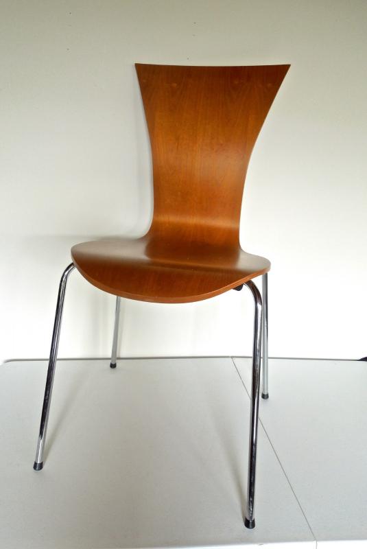 Contemporary bentwood and metal accent chair evokes a midcentury modern feel to the home. Note scratches and marks on seat area and front of rise. Metal legs. Chip on underside of seat.