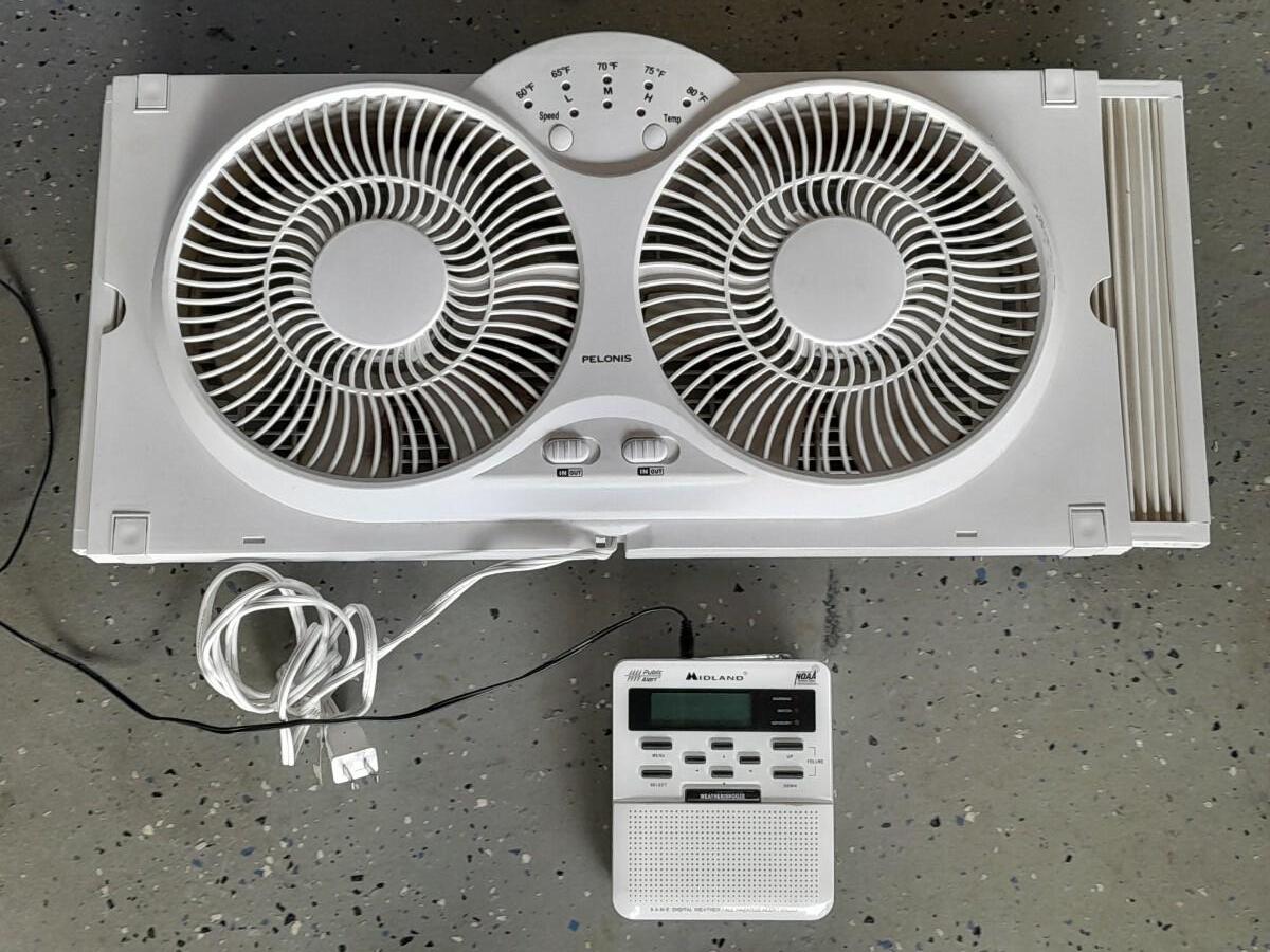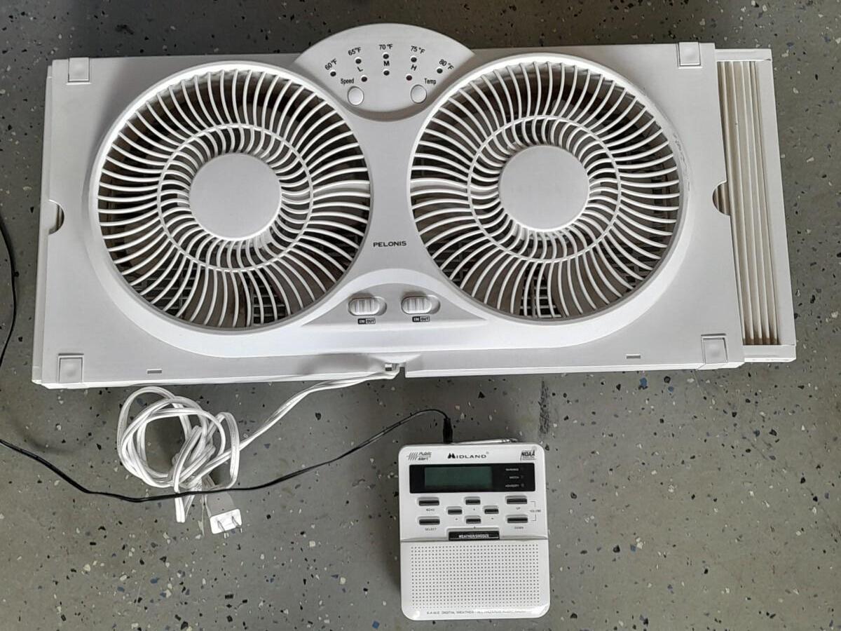 LOT 114 PELONIS WINDOW FAN AND MIDWAY WEATHER RADIO