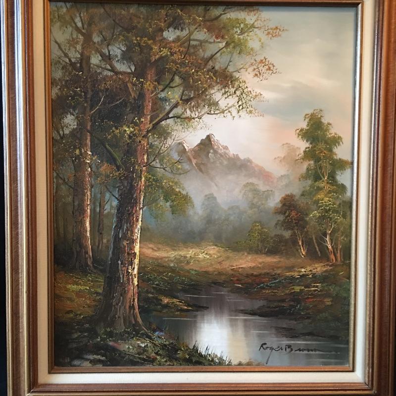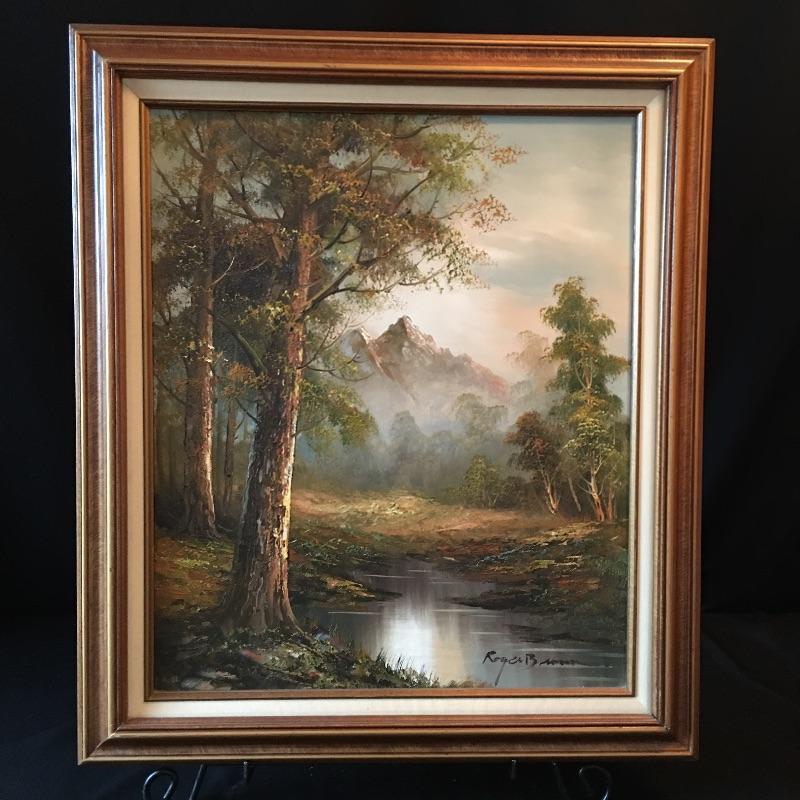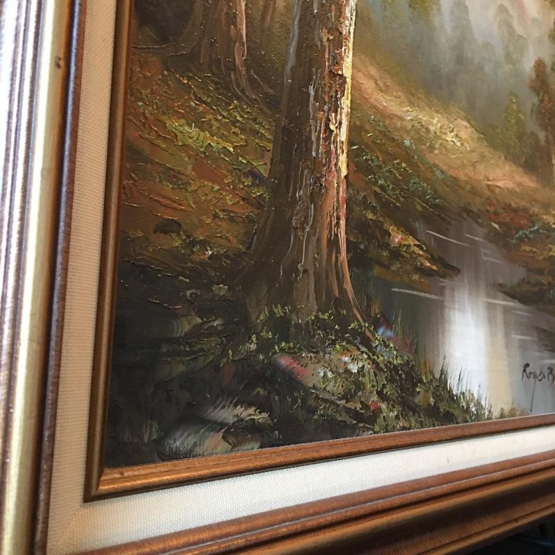 Roger Brown framed and signed landscape oil painting. A mesmerizing painting that makes you feel like you are there. Frame measures 25.5” x 29.5”.