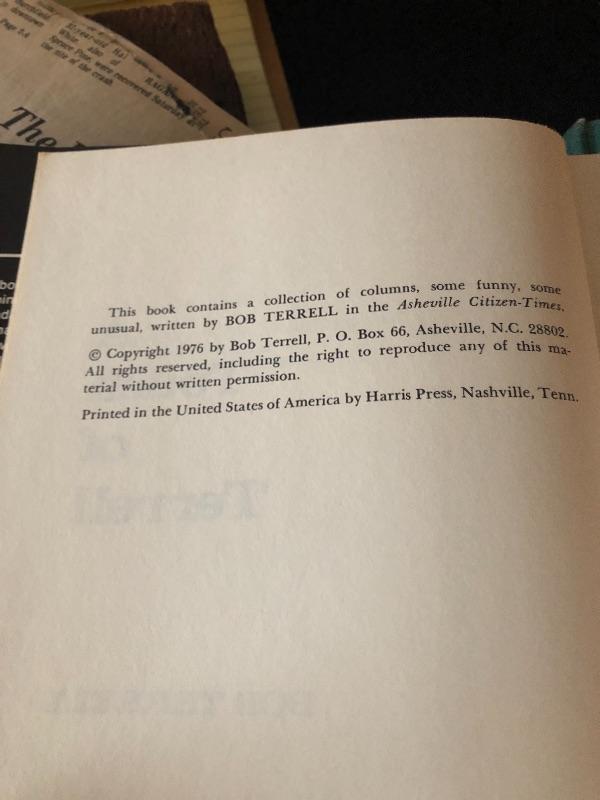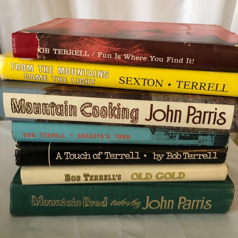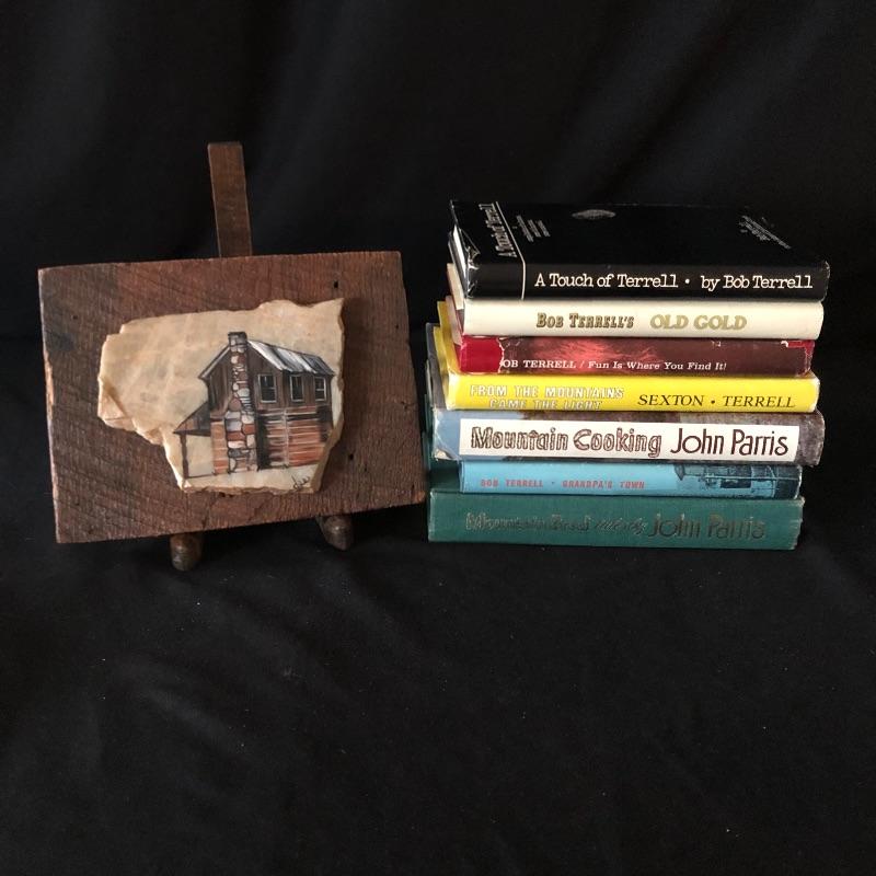 Sweet collection of books by local Authors. This includes five by Bob Terrell, longtime columnist for the Asheville Citizens Times. There are two by John Parris. All books are signed except John Parris Mountain Cooking and Bob Terrell Fun is Where You Find it. Lot also includes a cute piece of cabin art on painted on stone(and wood). Signed by artist. Art measures 6 x 9 and can be hung on wall.