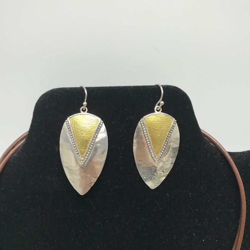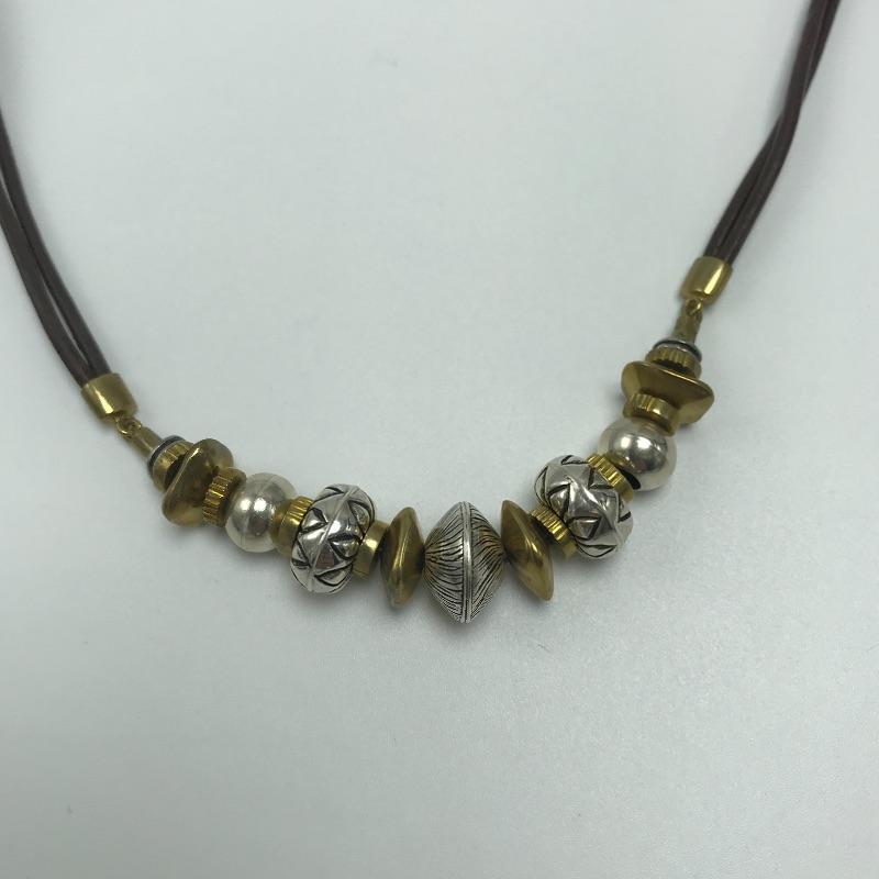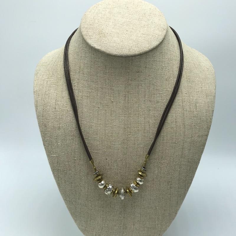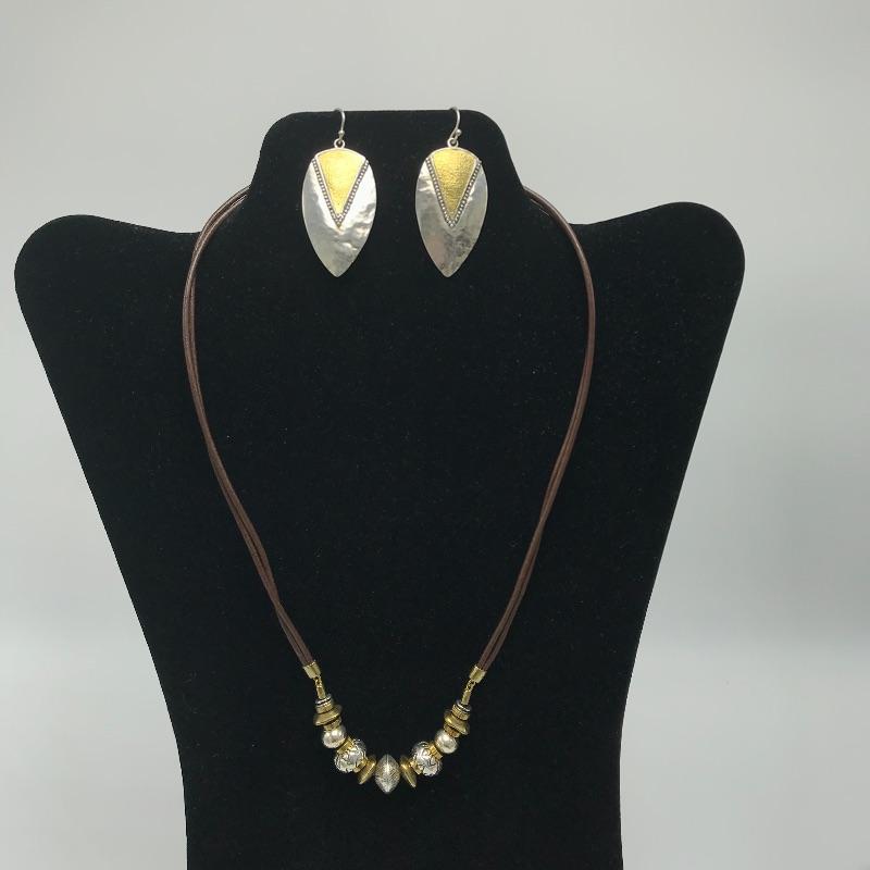 Lovely Silpada two-toned pieces including 2” earrings with brass, sterling silver and French wire drops. We’ve paired these beauties with a 30” leather cord necklace with complementing brass and silver eye catching beads.