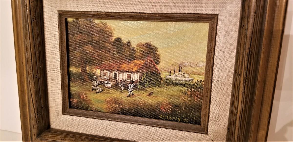 Lot #114 Small Original Painting - Oil on Canvas - Plantation Scene