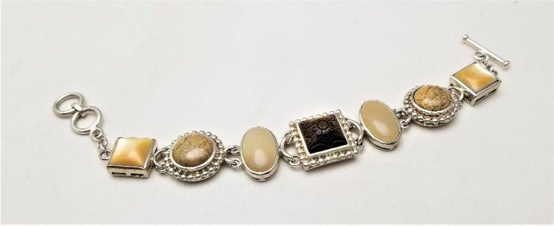 Lot #114 Sterling Silver (marked ) Bracelet set with Neutral colored stones