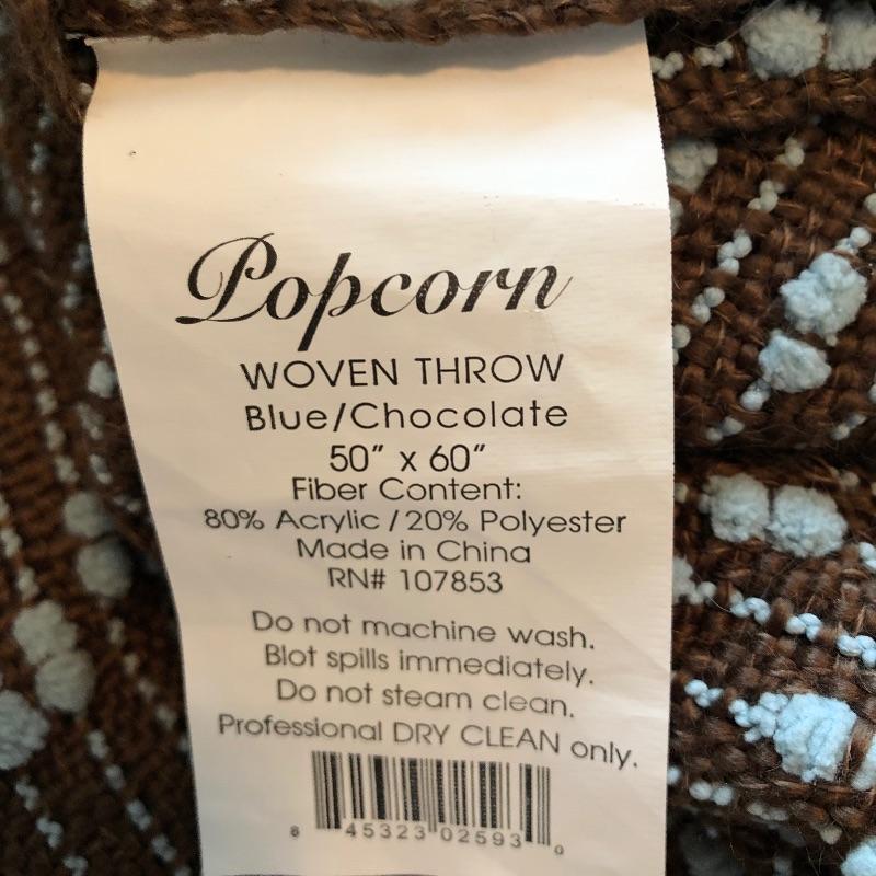 The gray and white throw is queen sized and the brown and blue throw measures 50” x 60”.