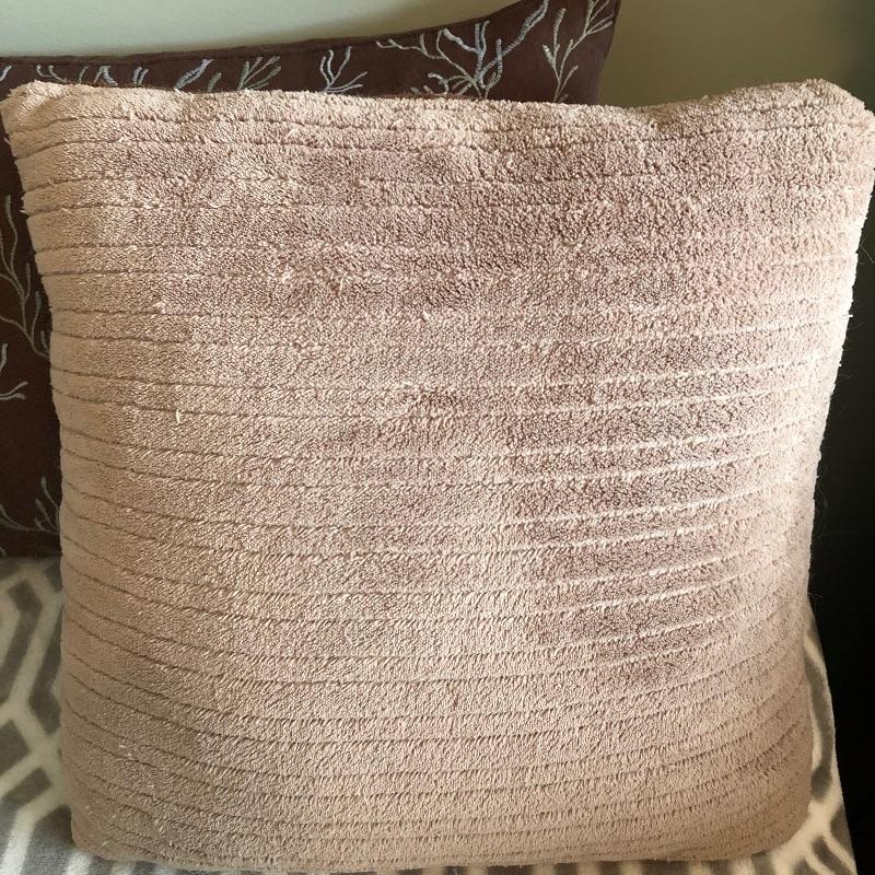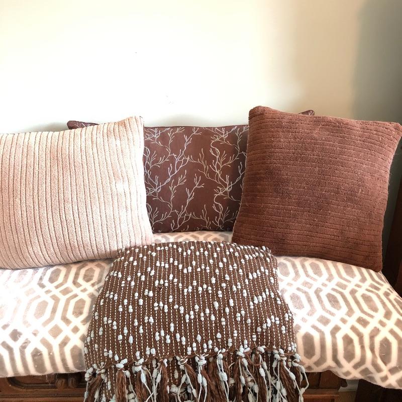 Very soft and luxurious throws and pillows that remain in pretty good condition despite a certain feline making her mark with some scratching and pulling see photos.