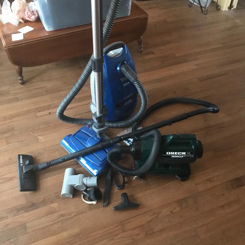 Oreck XL Ironman with attachments and extra bags. Kenmure Intuition Crossover 12 amp. Lot is available for local pick up in Flat Rock, NC only.