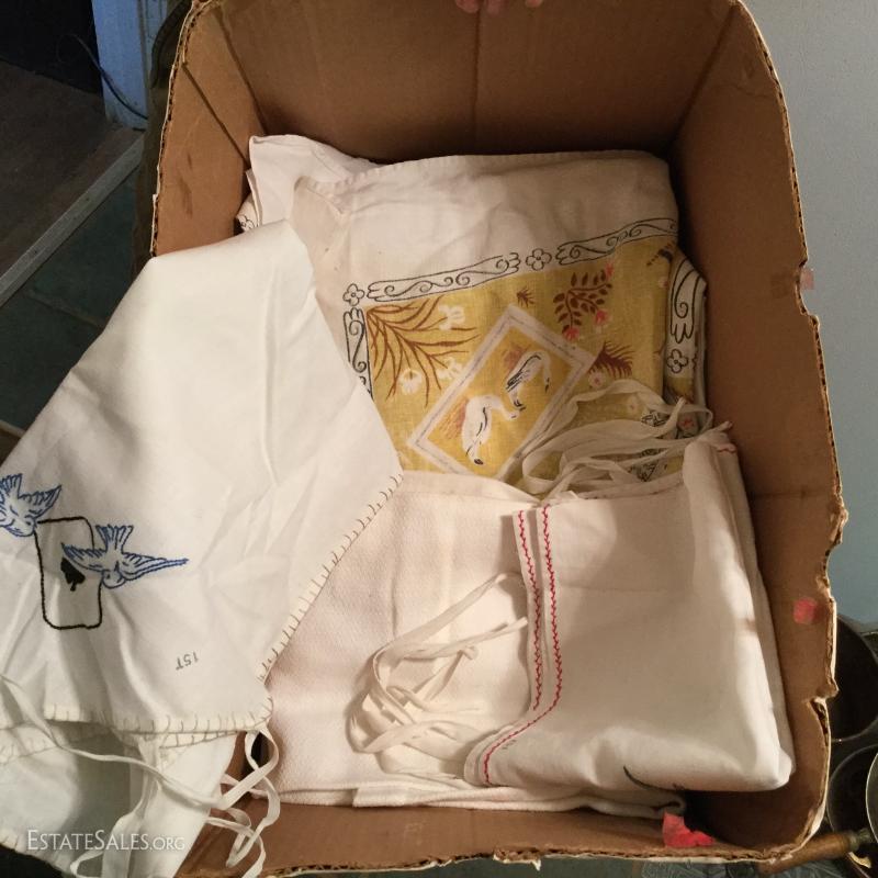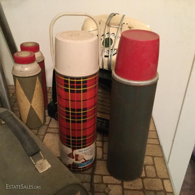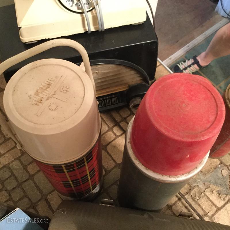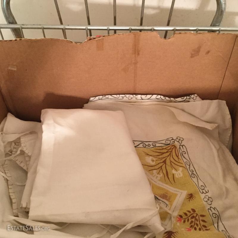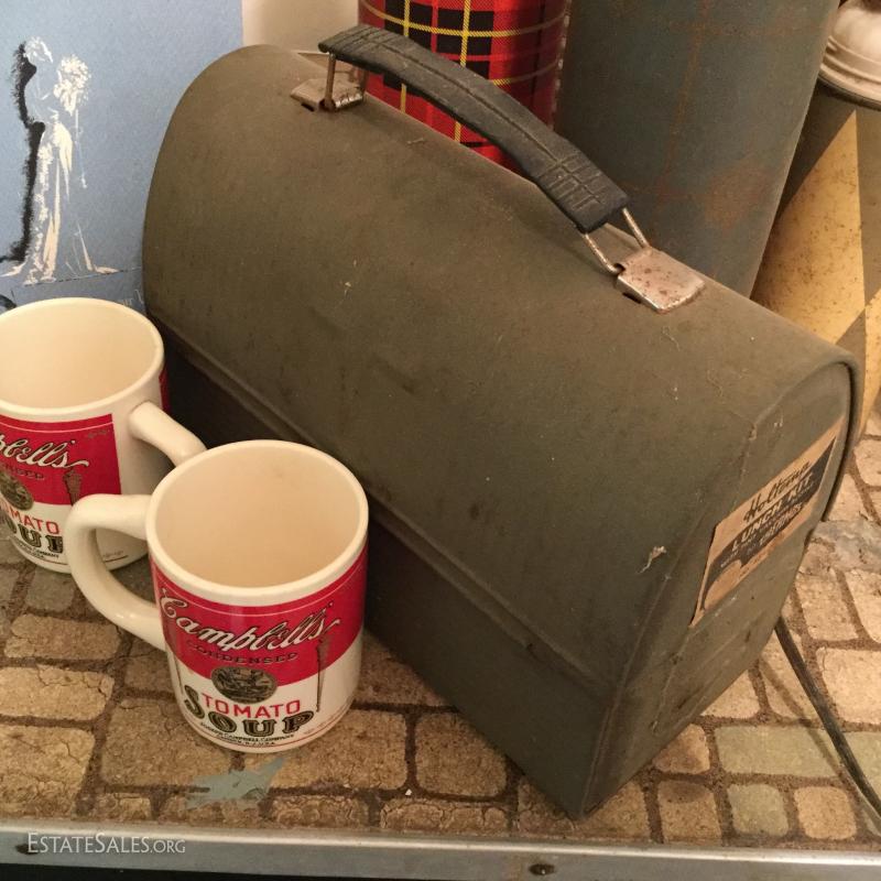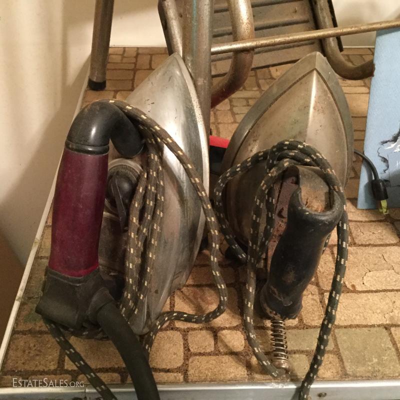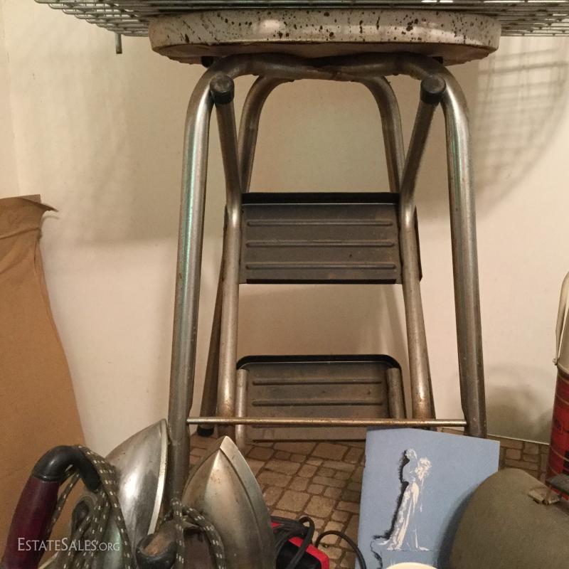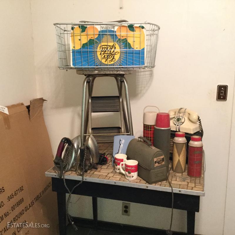 Great lot with many surprises - just to name a few: multiple vintage thermostats, metal lunch box, stepstool, table, vintage stereo, antique irons, many vintage linens and much, much more! This lot is available for local pick up only in Saluda, NC.