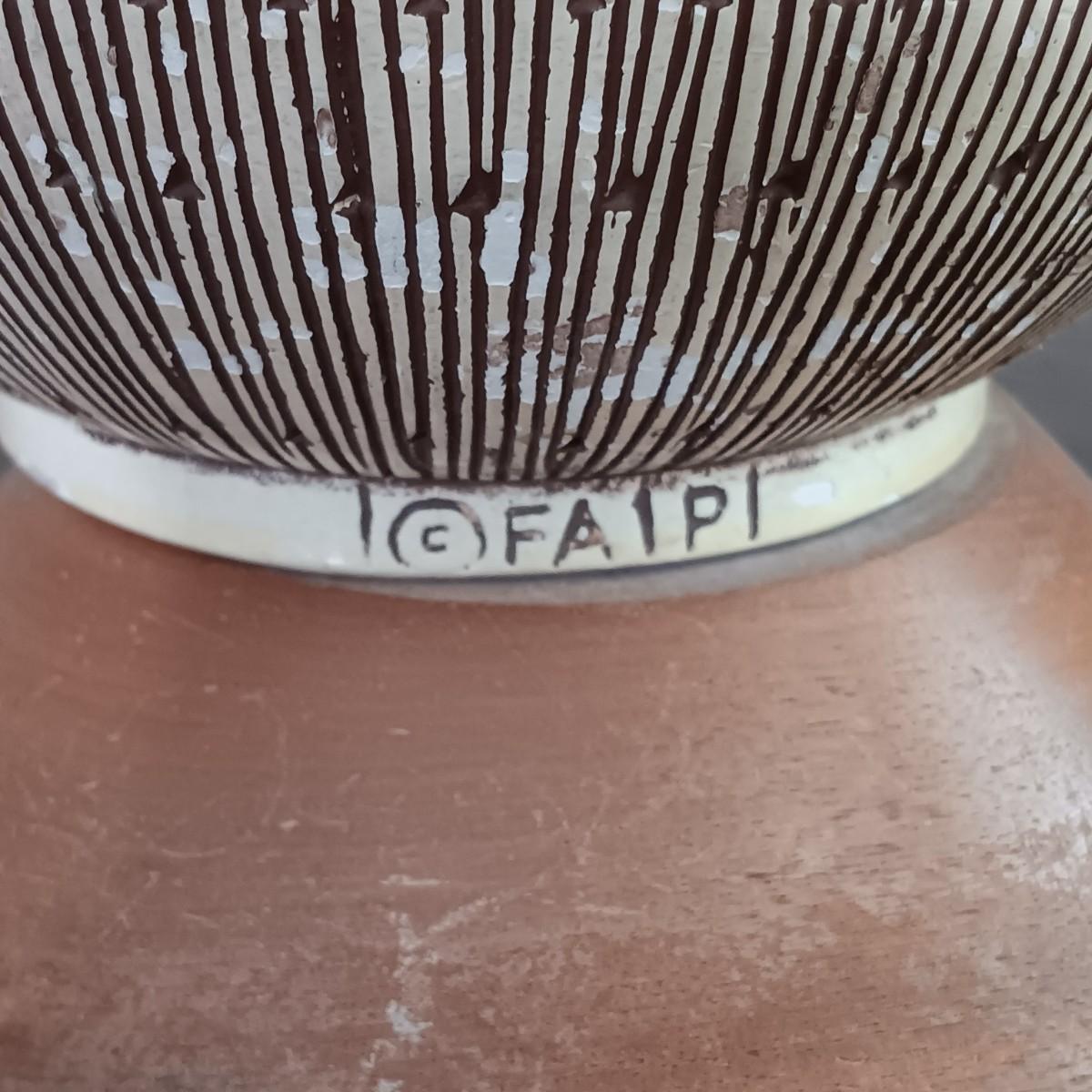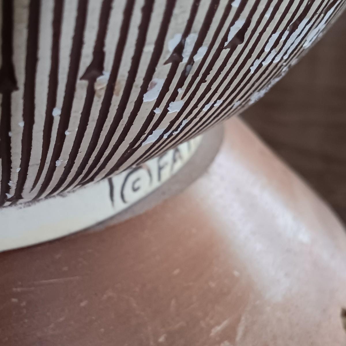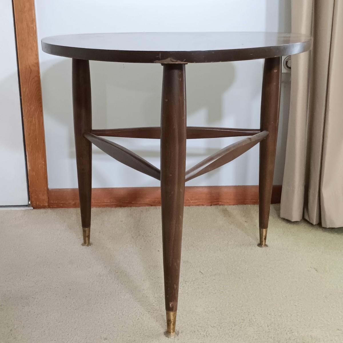LOT 3: Mersman Guitar Pick Formica End Table w/ F.A.I.P. Chalkware and Wood Lamp