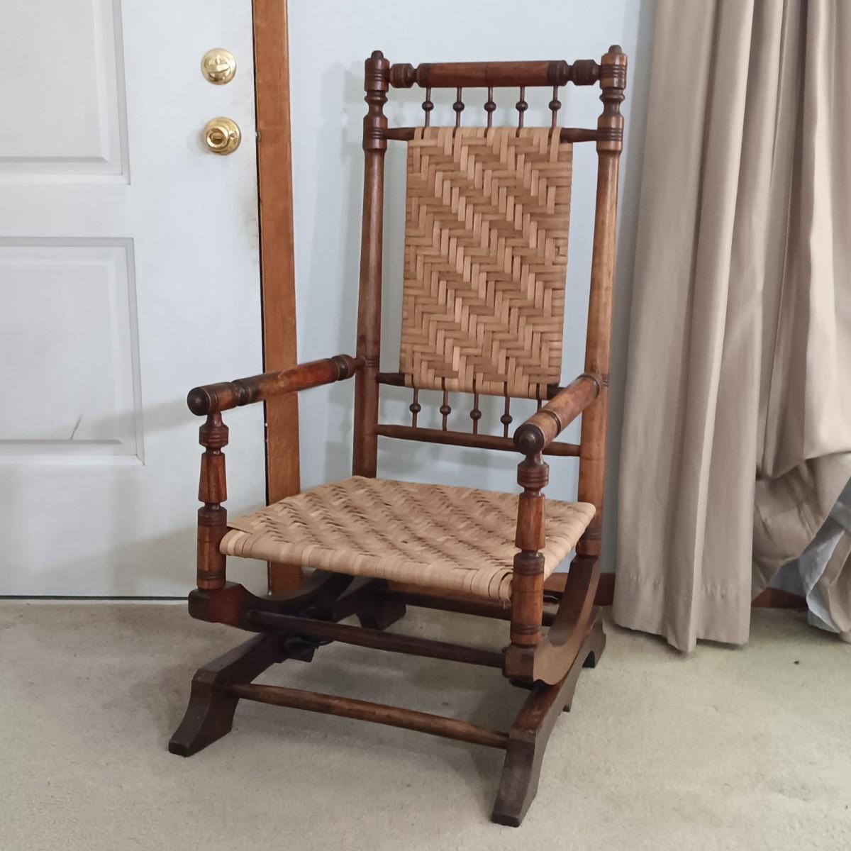 LOT 6: Howard Fisher Solid Wood and Wicker Rocking Chair