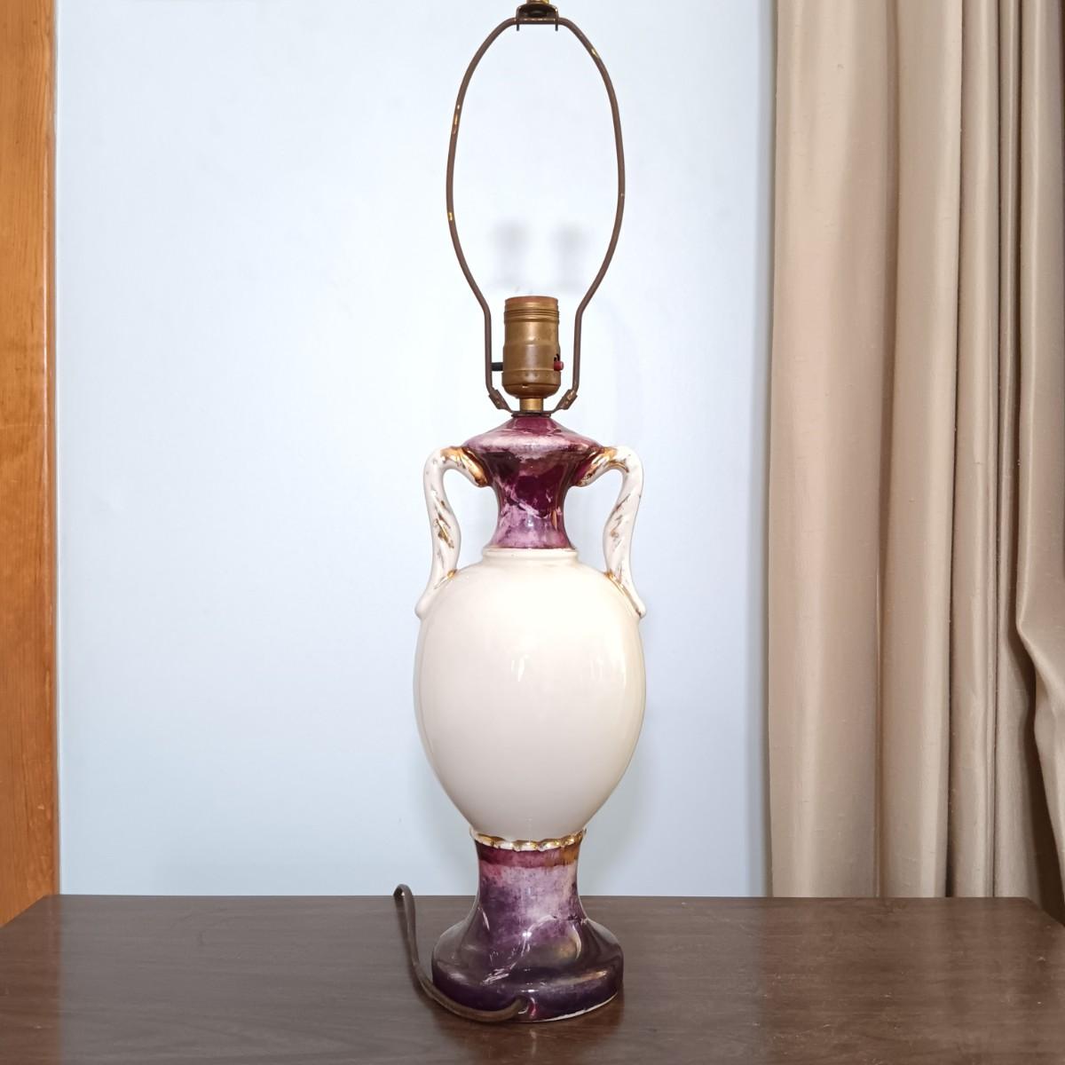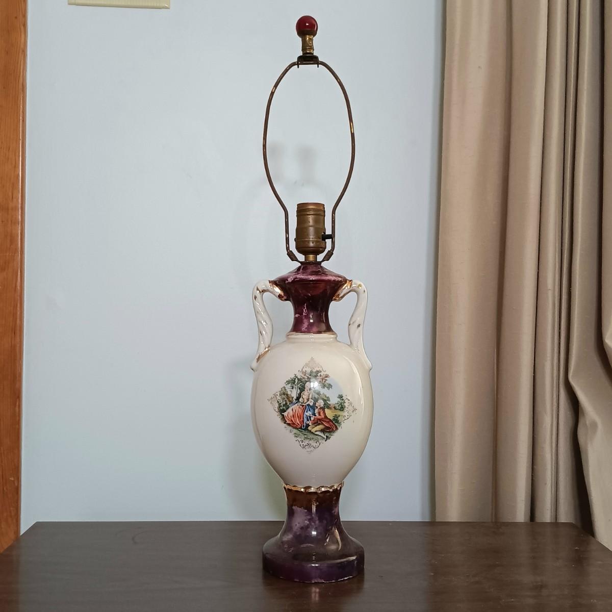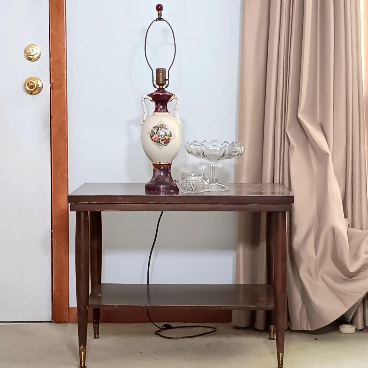 LOT 9: Vintage Mersman Brass Footed End Table, Martha and George Washington Porcelain Lamp & More