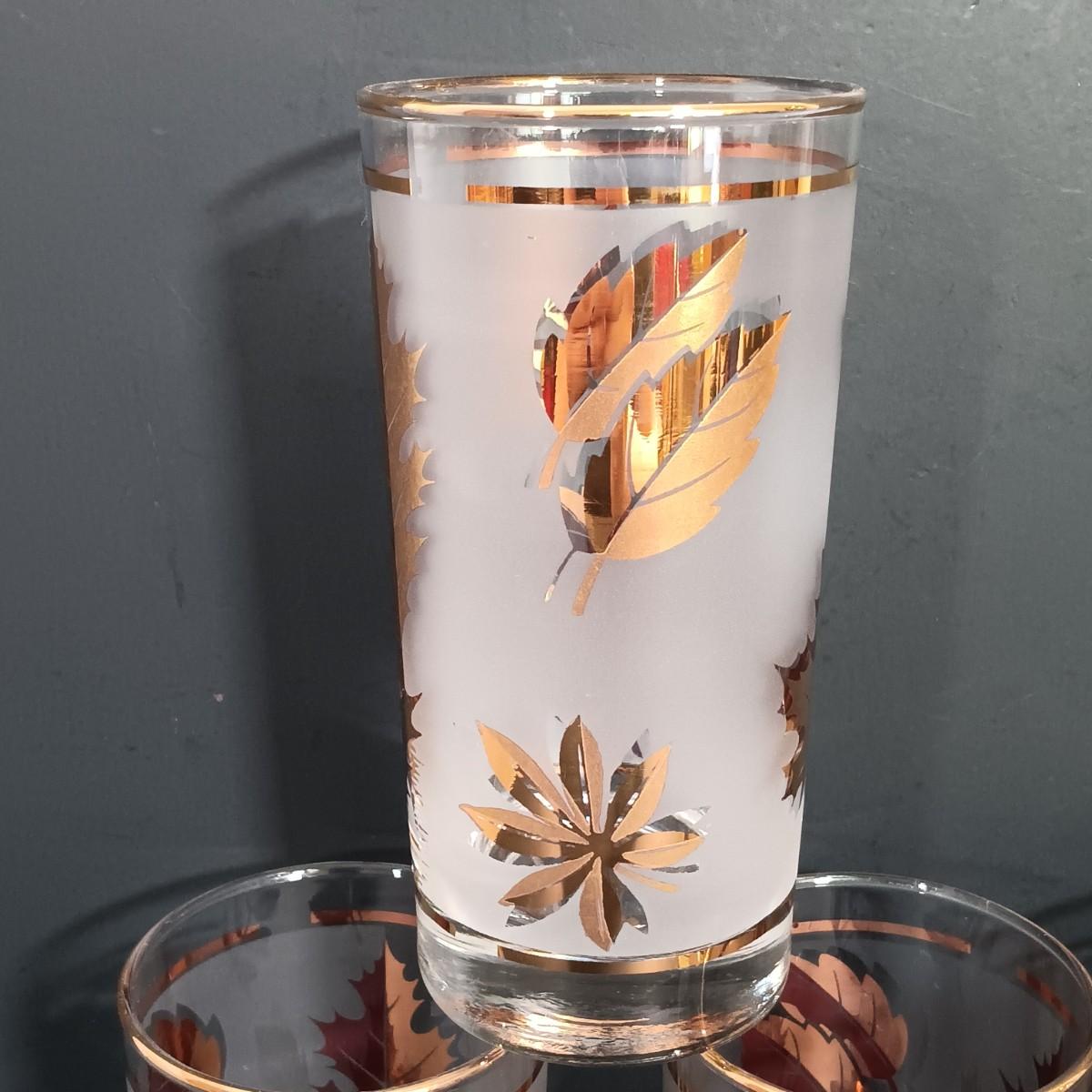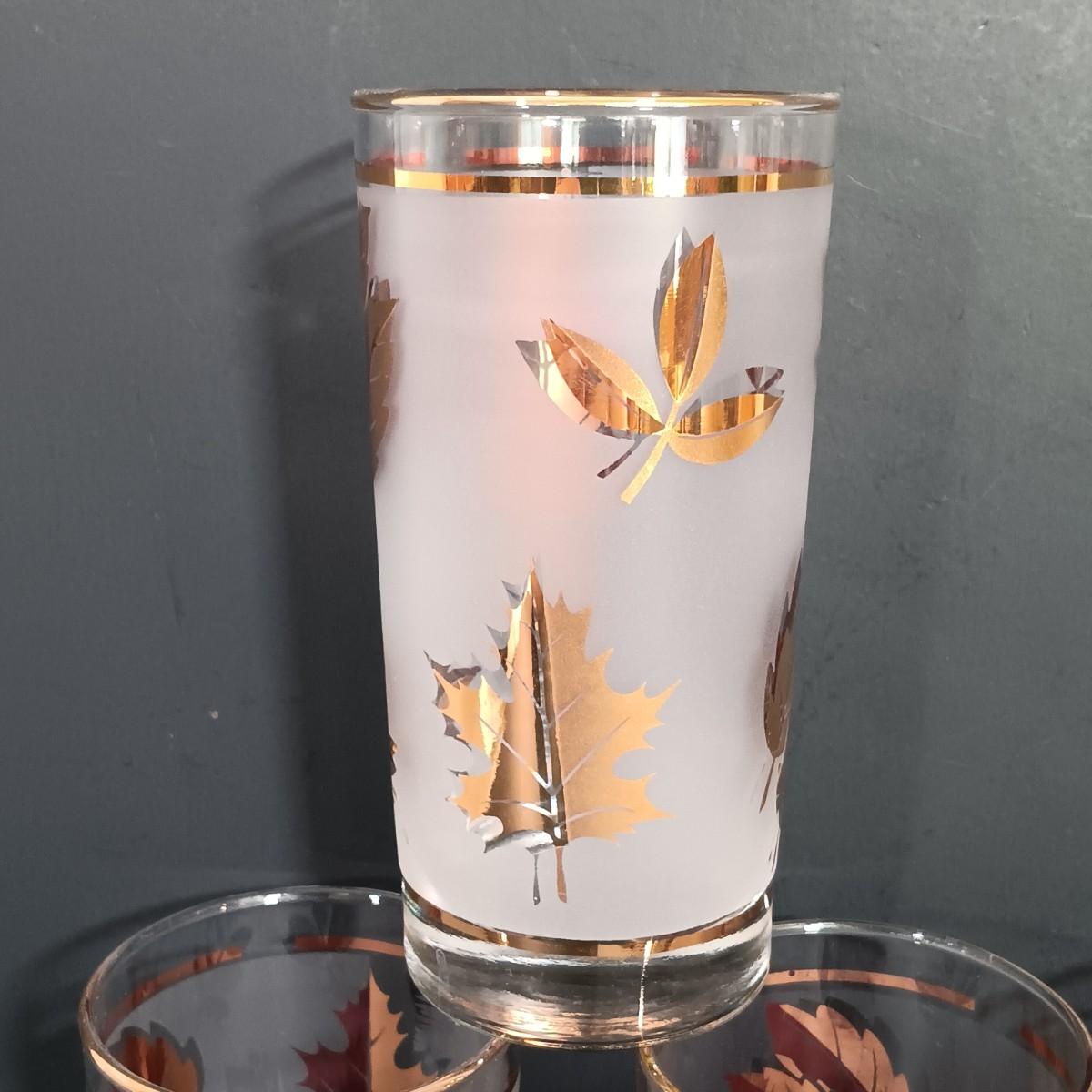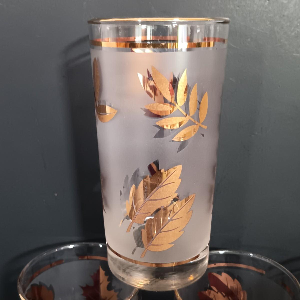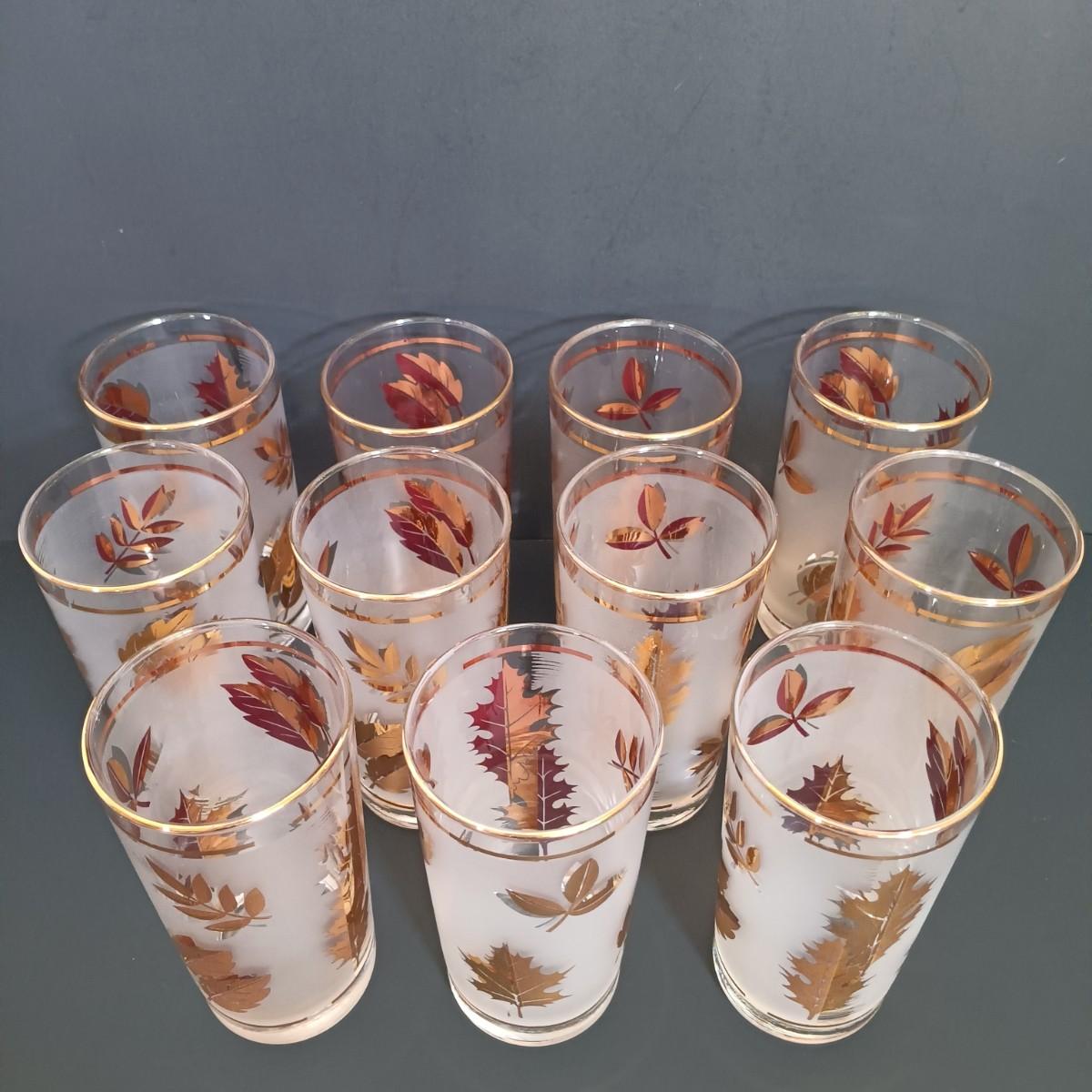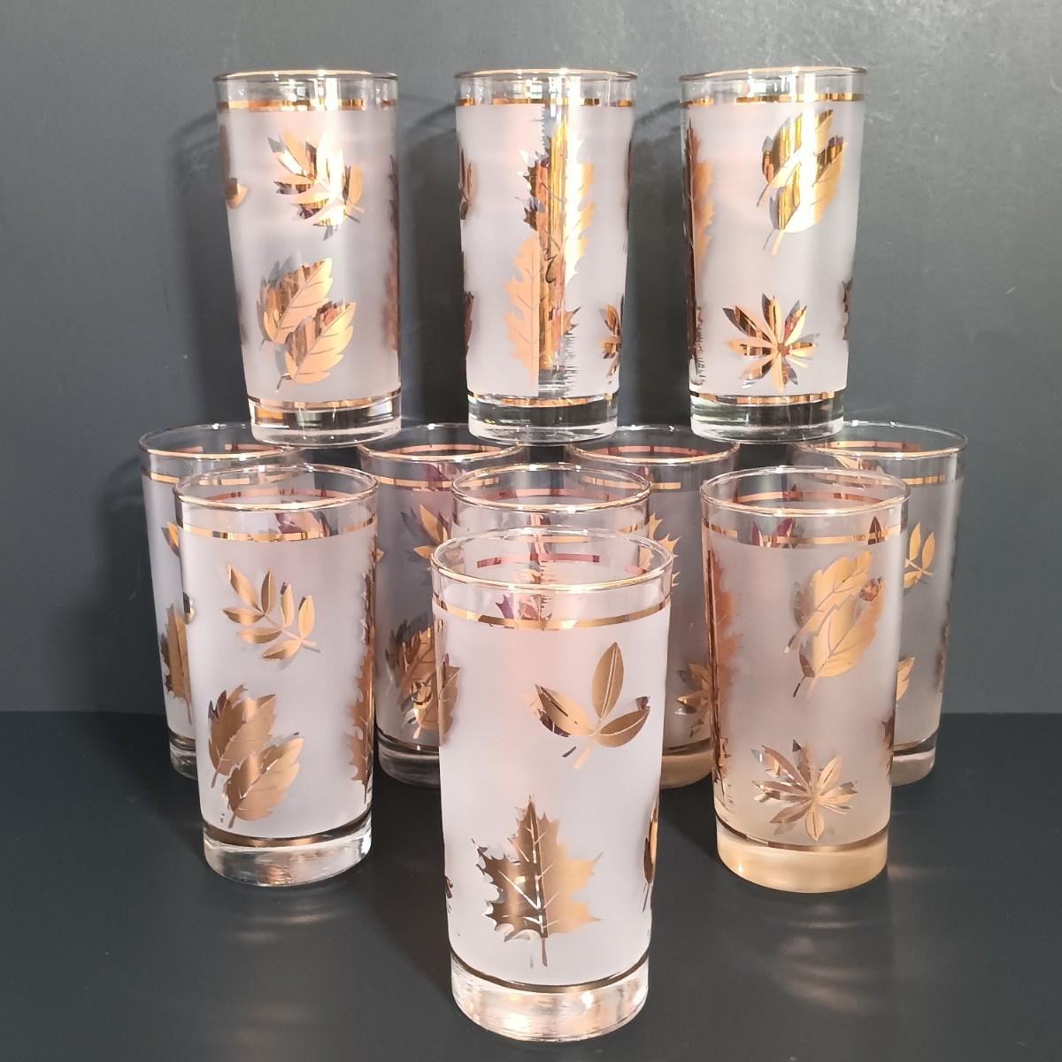 LOT 13: MCM Libbey Frosted Gold Leaf Glasses Set of (11)