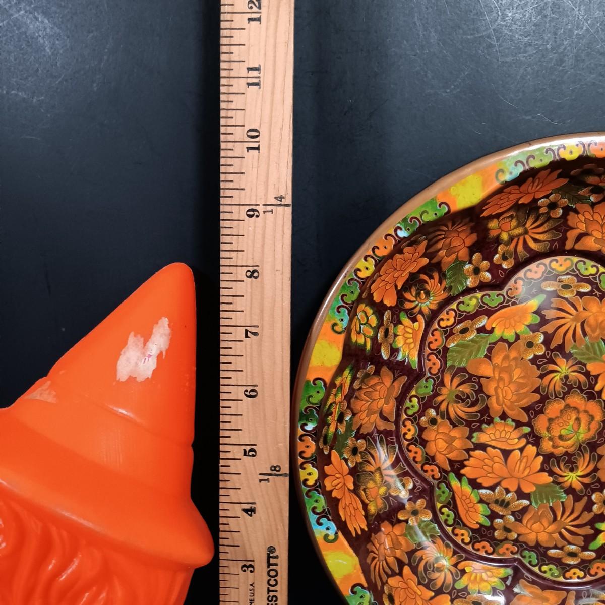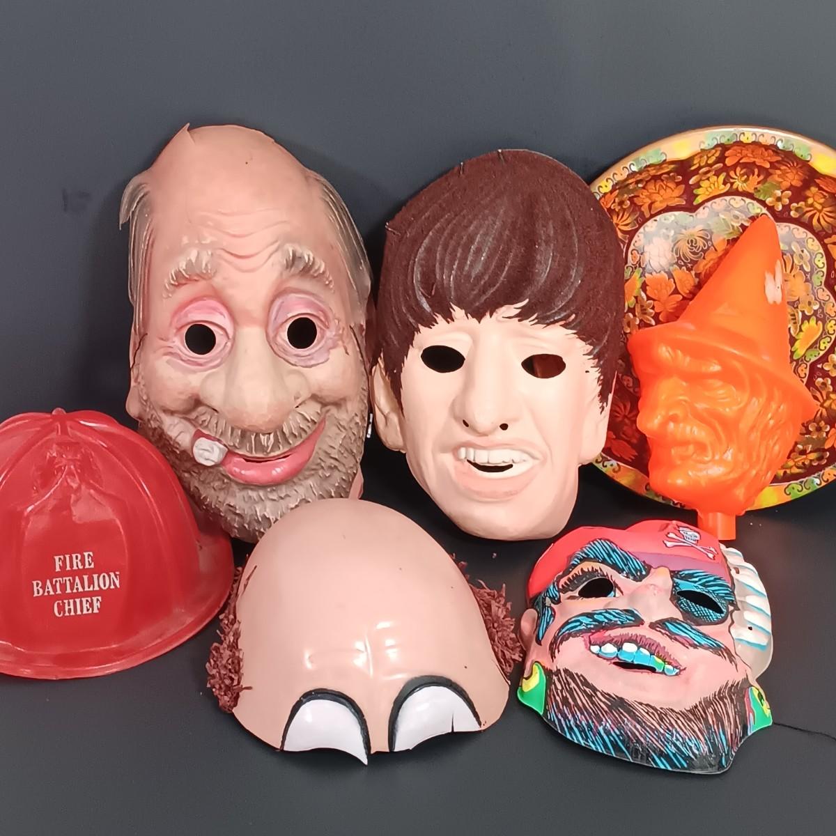 LOT 27: Bayshore Inc Blow Mold Witch Head, Baz Cooper Costumes Ringo Starr Mask, Daher Metal Bowl & More